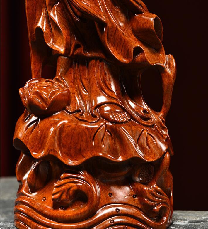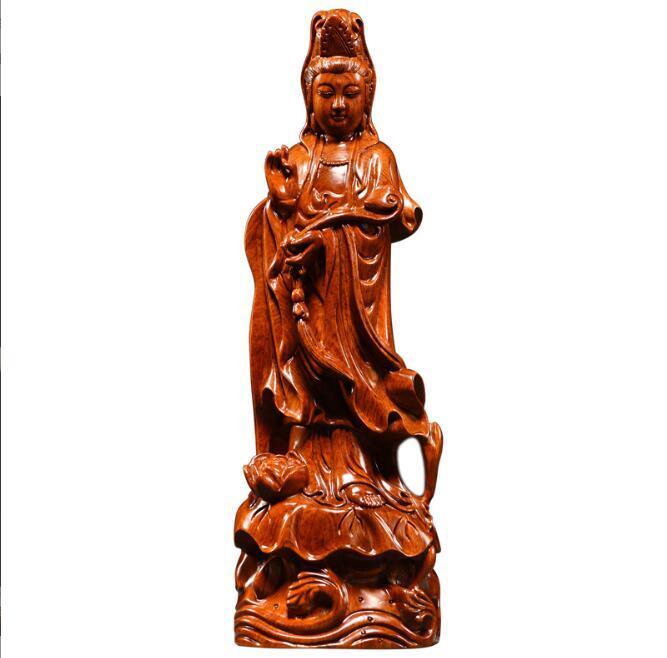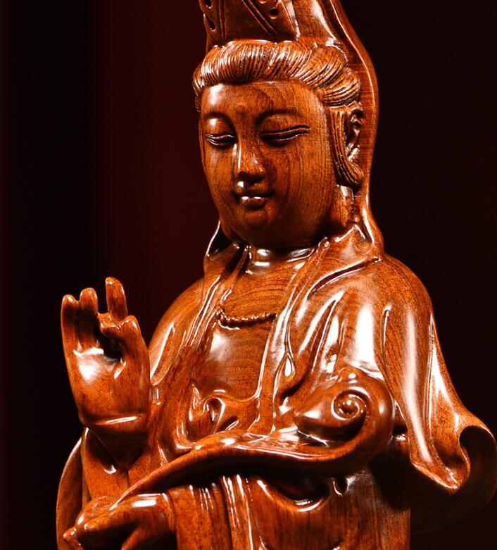 新作仏教美術 観音菩薩像 檀木 精密細工 木彫り 仏像 置物 高さ30cm お守り 厄除 供養 開運 置物 仏具 仏像