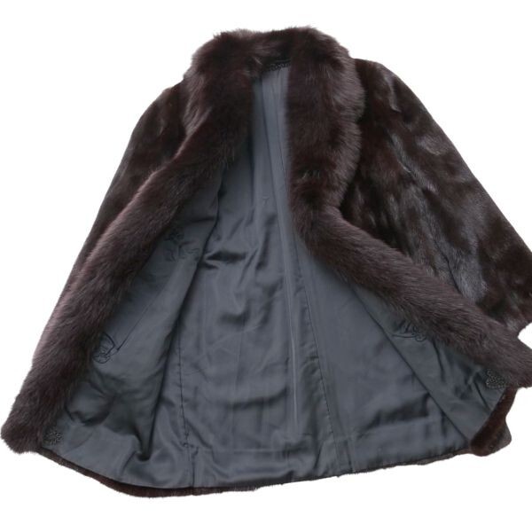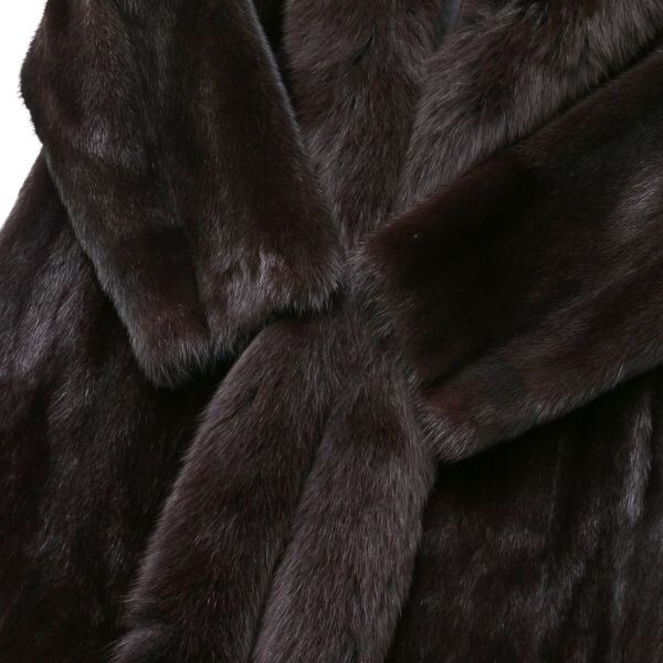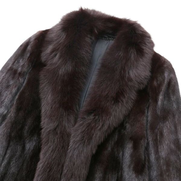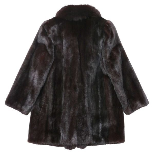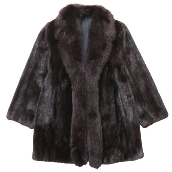 | GS2701◎ダークミンク × フォックス ファーコート ミドル丈 ショールカラー サイズ10 毛皮コート ダークブラウン系 | |||