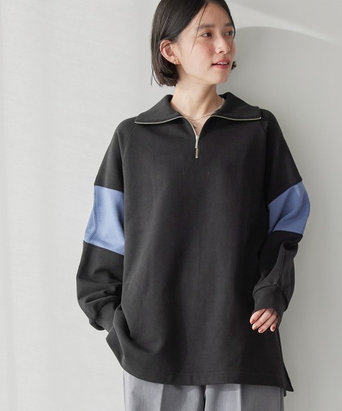 参考商品名:ハーフZIP配色切り替え裏毛チュニック