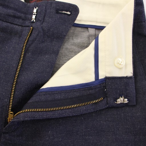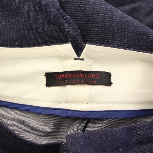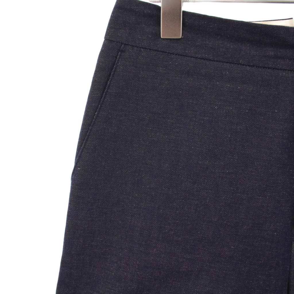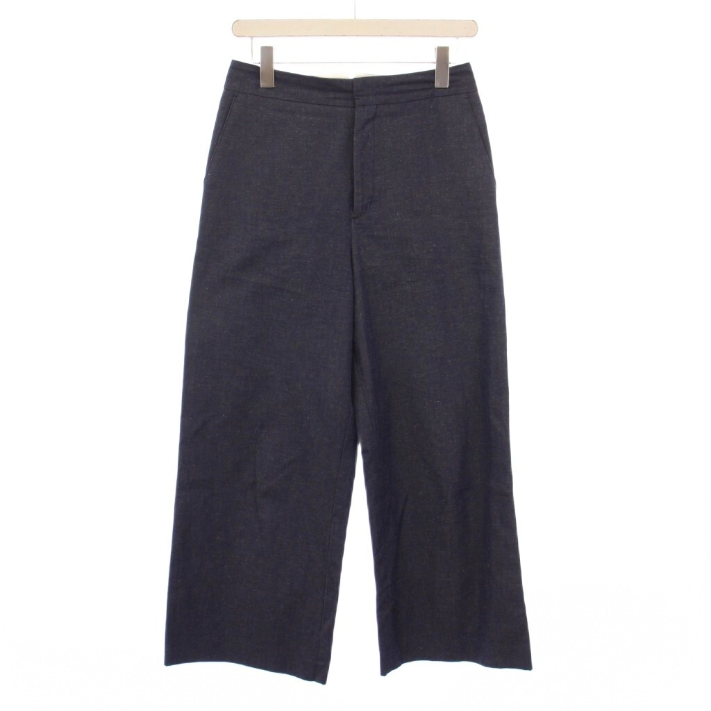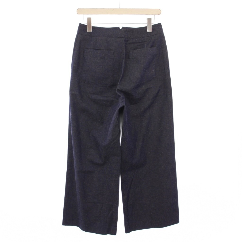 トゥモローランドコレクション コットンリネンデニムワイドストレートパンツ スラックス ジップフライ 無地 36 紺 ネイビー