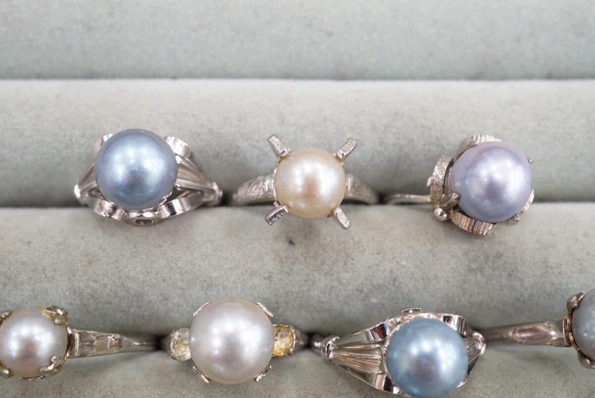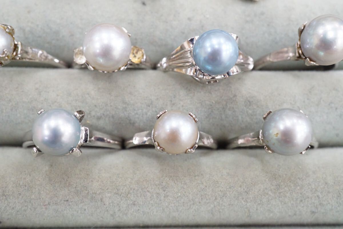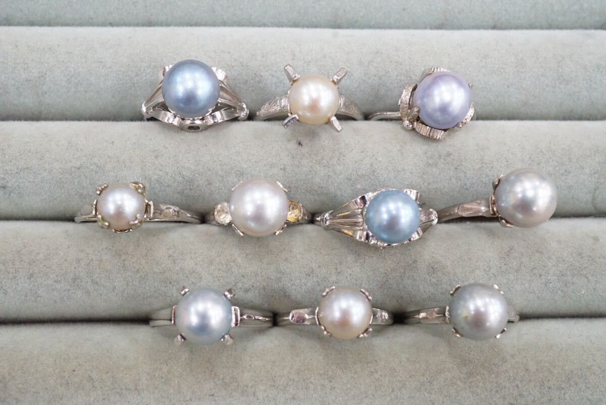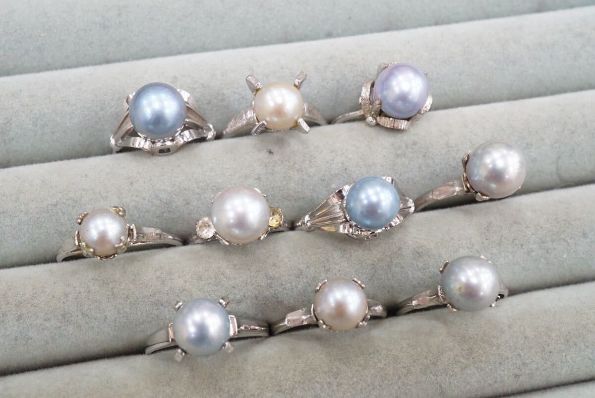 B430 カラーパール アコヤ真珠 本真珠 リング 指輪 10点セット ヴィンテージ アクセサリー 大量 まとめて おまとめ まとめ売り SILVER含む