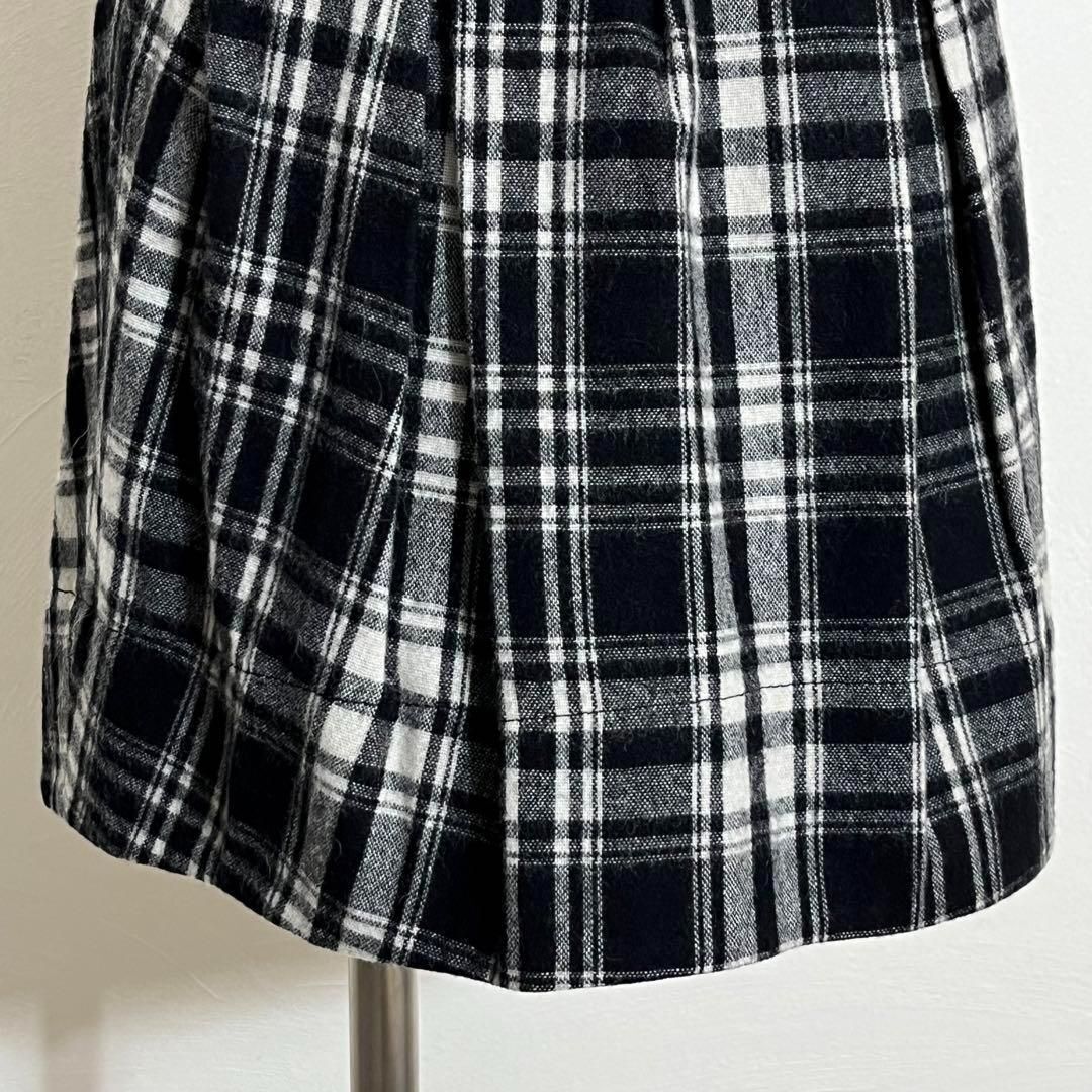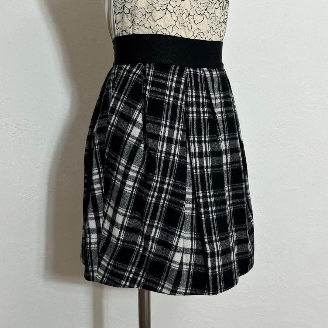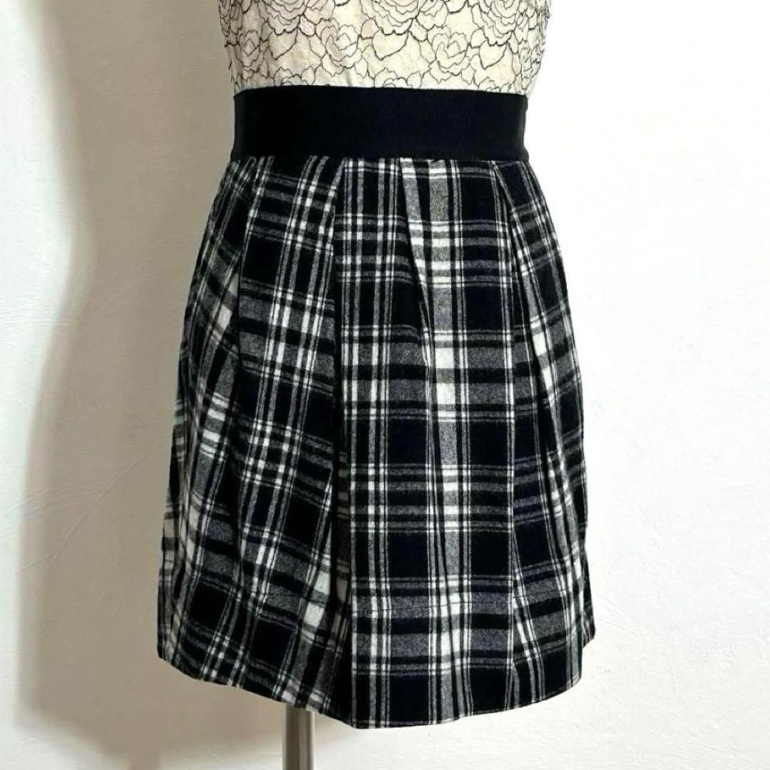 モノトーン バイカラー チェック柄 タックフレア ミニスカート レディース