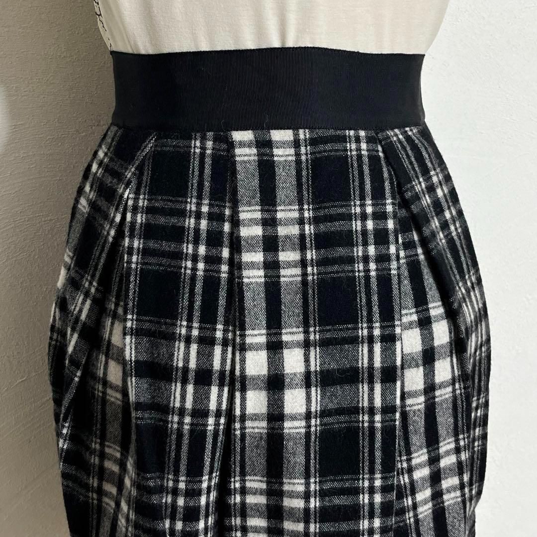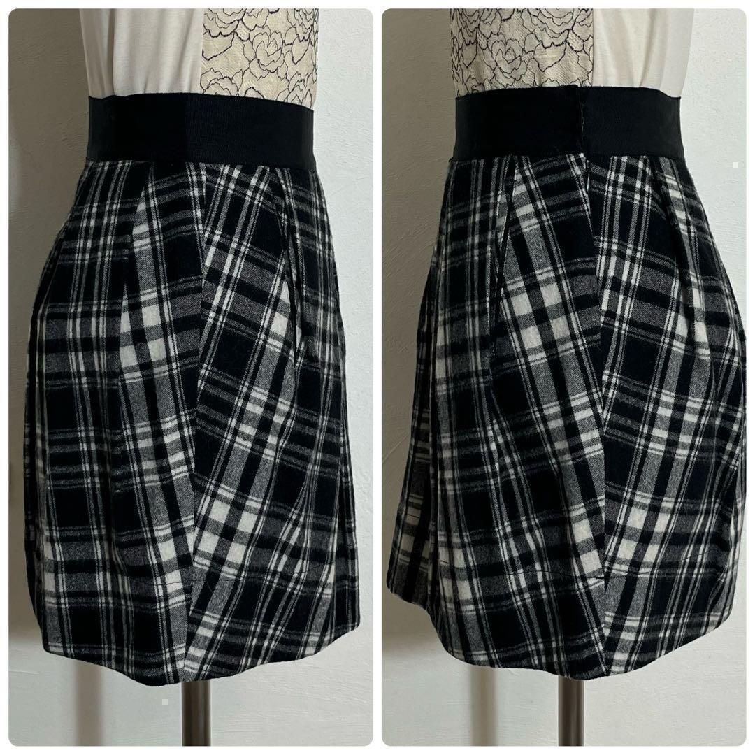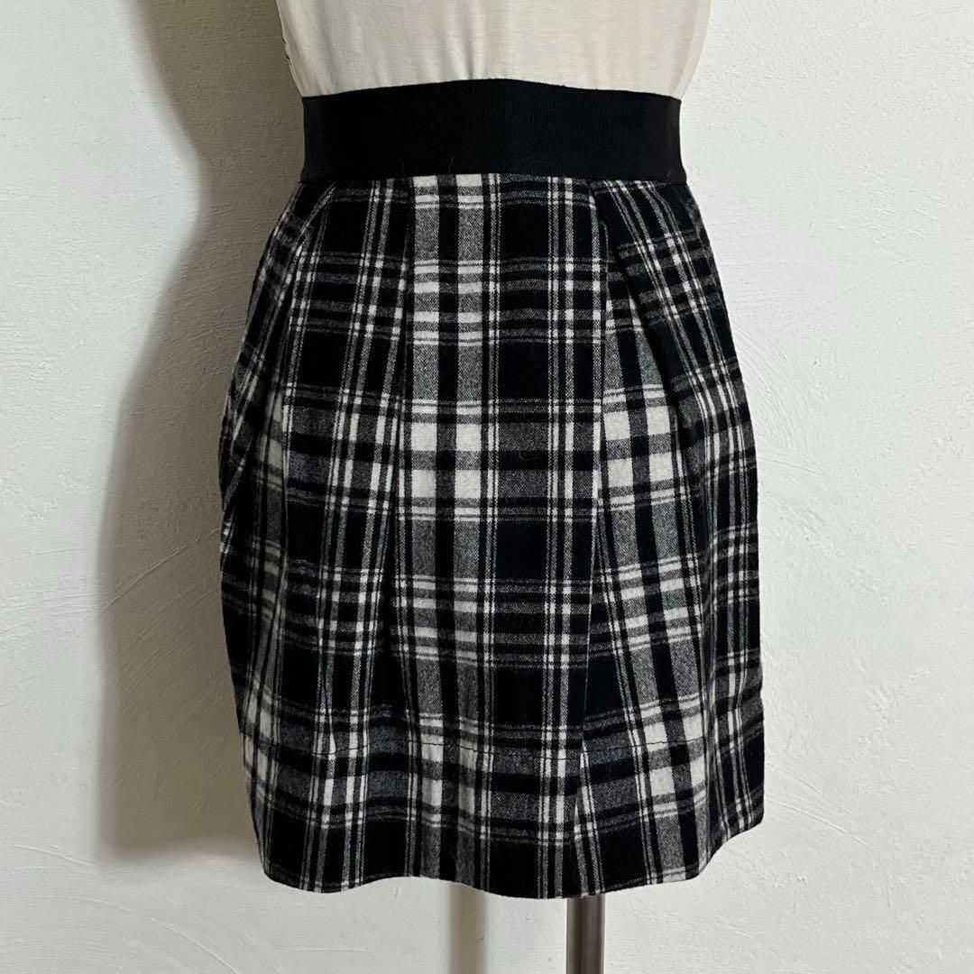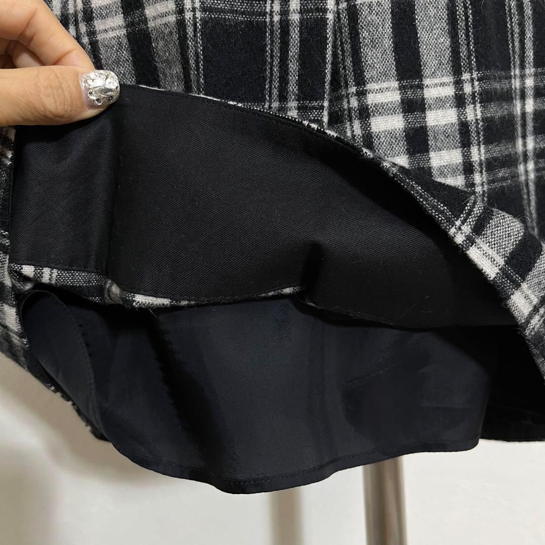 モノトーン バイカラー チェック柄 タックフレア ミニスカート レディース