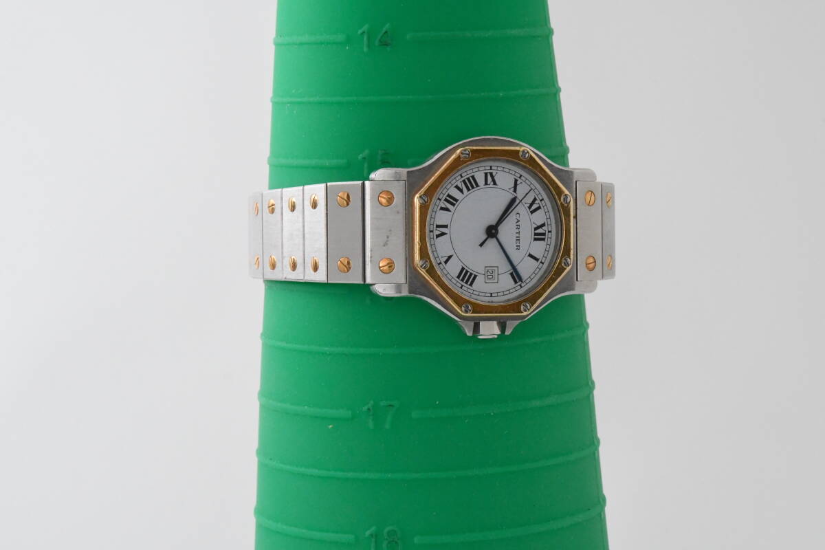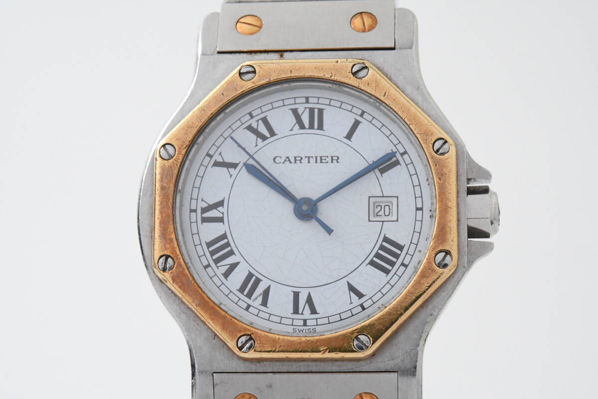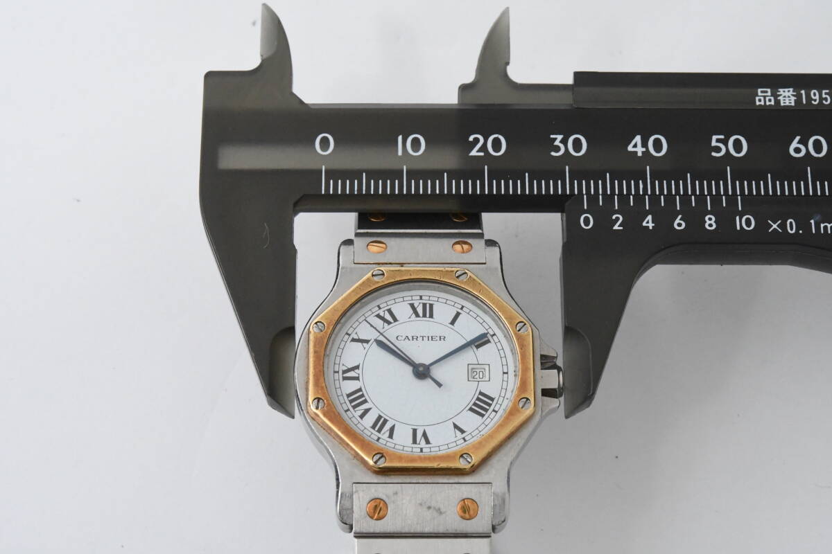 【希少品】カルティエ サントス オクタゴン OR ET ACIER Cartier デイト 自動巻 コンビ×白 ローマン メンズ 腕時計1010-01