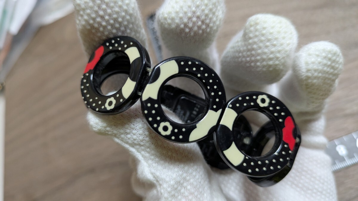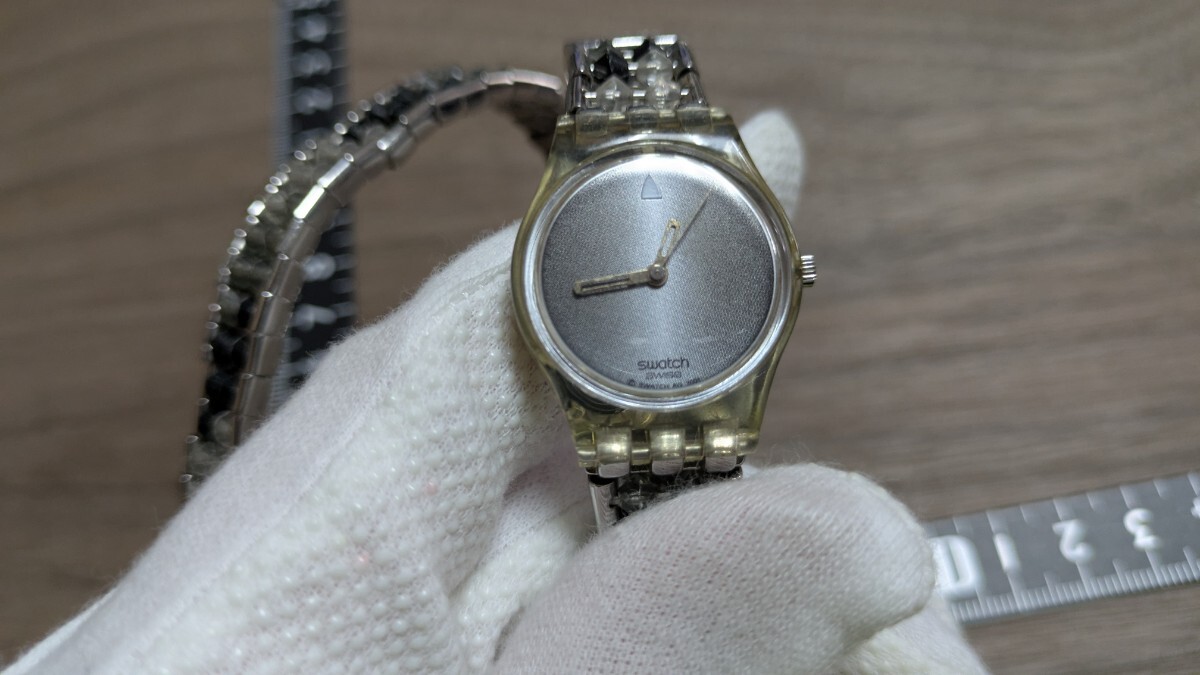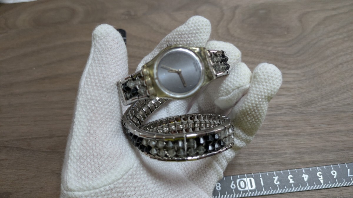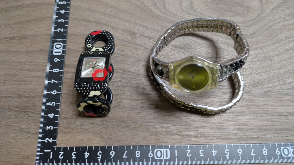 もう1本は電池が無くて動作確認出来ておりません。そのためジャンク扱いです。ビーズベルトの腕時計はベンダブルタイプである程度好きな形に変形出来ます。