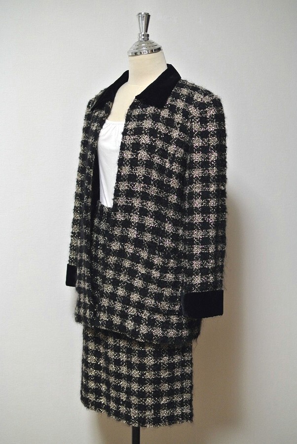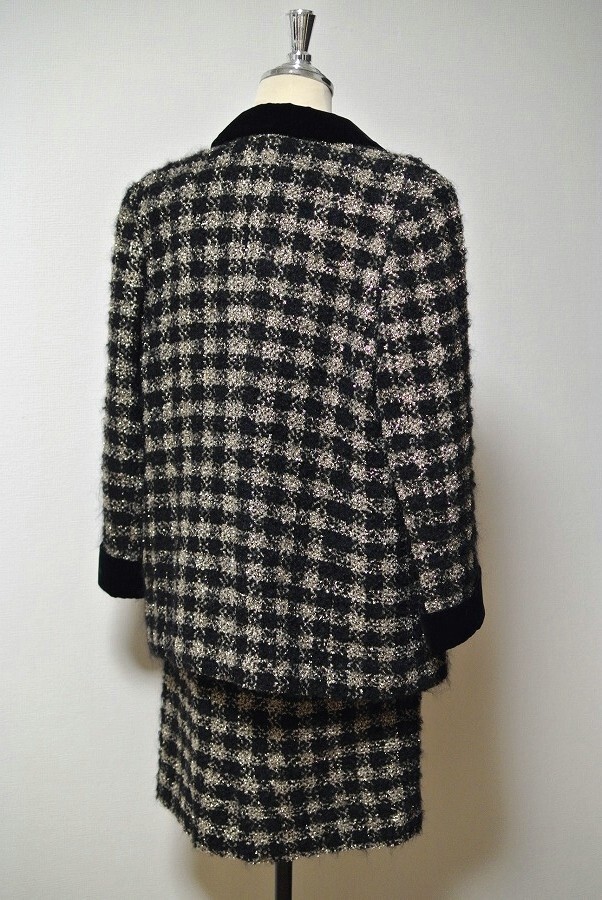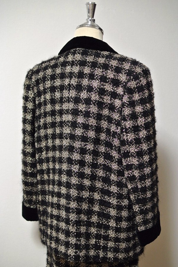 日本・大阪発のレディースファッションブランド、DANA PARIS「ダナパリ」 のレディース セットアップスーツです! バブル時代を象徴する、ゴージャスなレディーススーツ上下セットです。 当時特有の上質な高級素材や、肩パッド入りジャケット、レトロな雰囲気が魅力的です。 襟と袖口はベロア素材で、フロントにボタンはなく羽織って着用するデザインです。 色はブラックベースのチェックにゴールドのラメが織り込まれているゴージャスな生地です。 こちらのモニターでは、ほぼ実物どおりの色合いに写っていると思います。 「株式会社 リマージュライカ」 MADE IN JAPAN(日本製) ※インナーは写真撮影用サンプルになります。 |