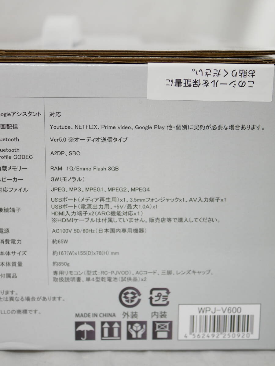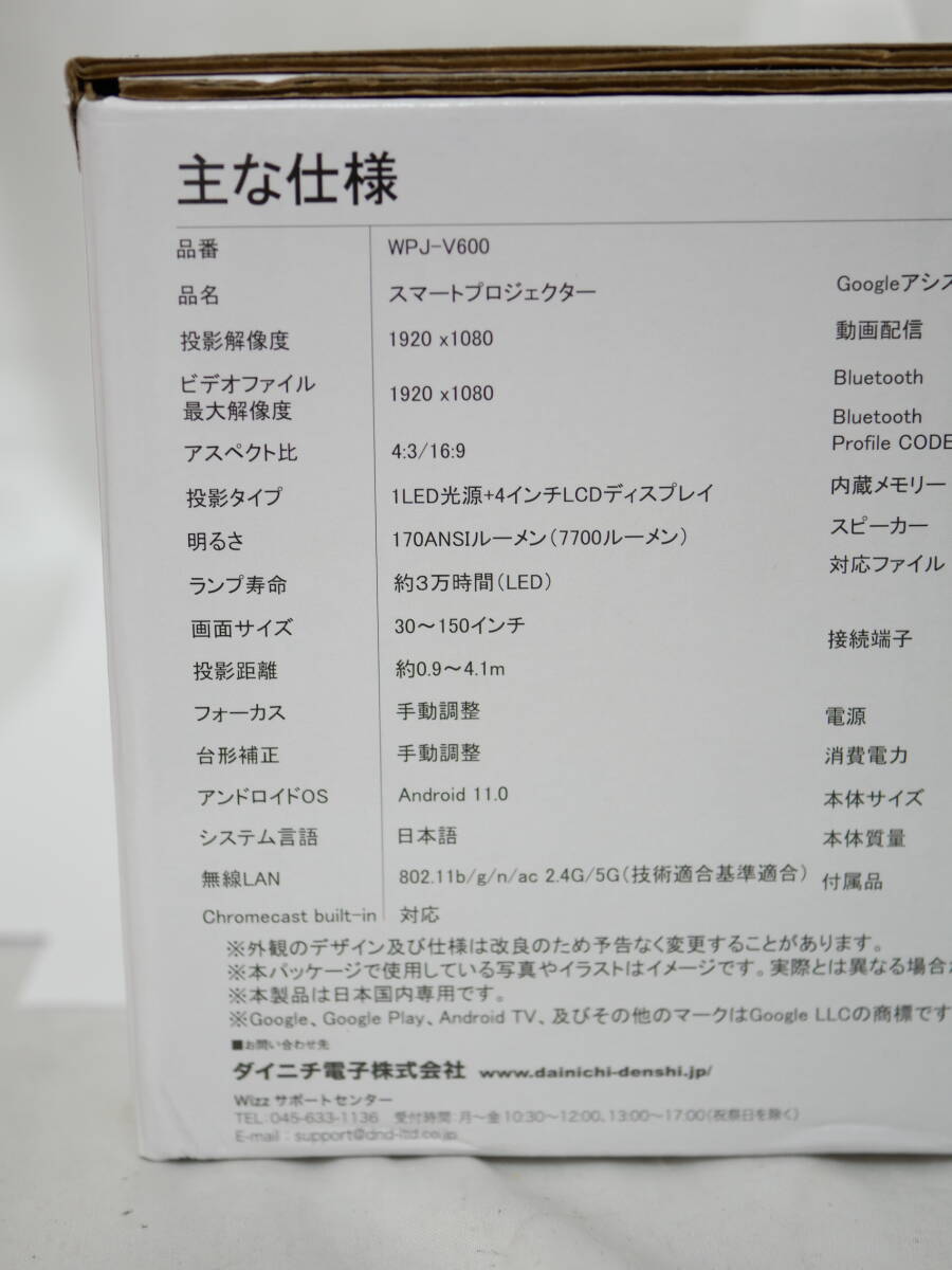 #7867 Wizz WPJ-V600 スマートプロジェクター android TV ダイニチ電子 ウィズ