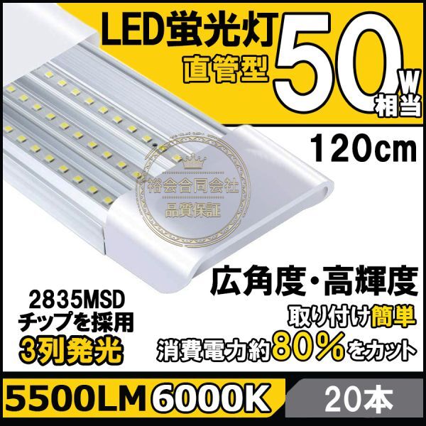 ★送料無料・30日間保証付き★高輝度 薄型 直管LED蛍光灯 20本セット 消費電力18W 50W相当 5500lm 昼光色6000K 3列LED搭載 器具一体型