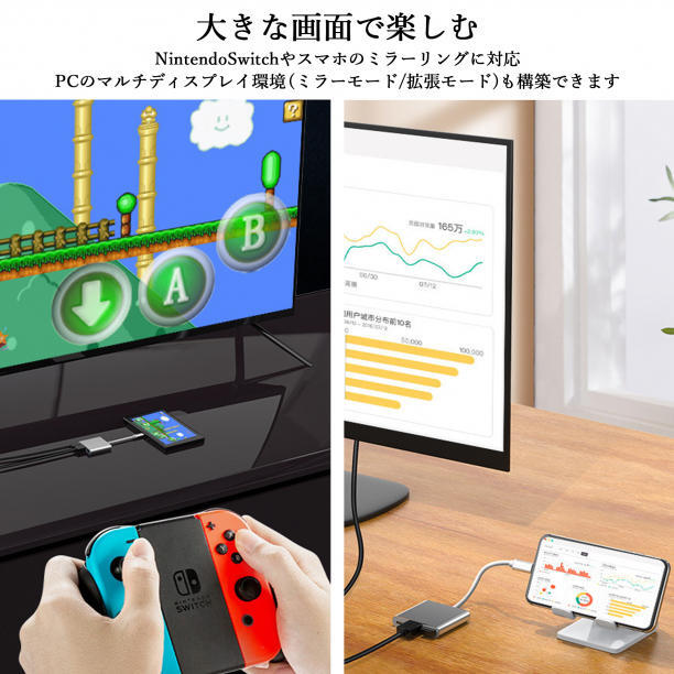 Type-C 対応のノートパソコンやスマートフォン、スイッチをHDMIディスプレイに接続できる!