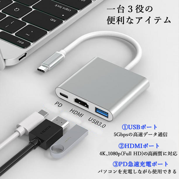 \ 便利な3in1マルチポートアダプター(Type-C) /