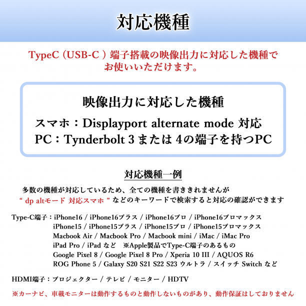 ※ スマートフォンやお持ちの機種がHDMI出力対応か事前にご確認ください