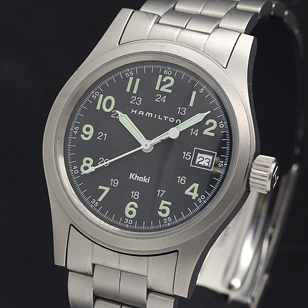 1円 ハミルトン カーキ 6361 ブラック文字盤 QZ メンズ腕時計 0970200 9PRT KTU