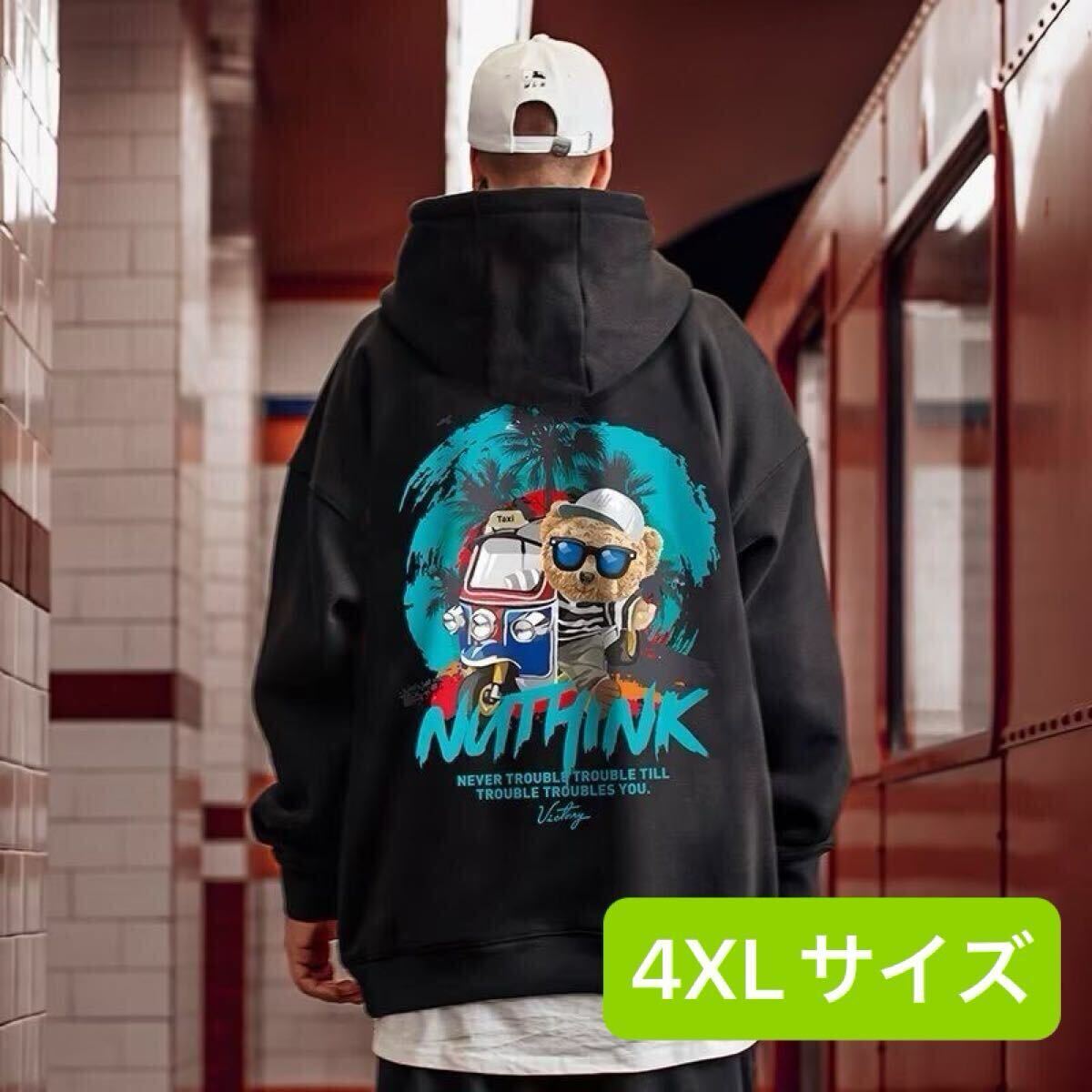 パーカー メンズ  ビッグシルエット 韓国風 ストリート 薄手 トレーナー 裏起毛 4XL ブラック クマ