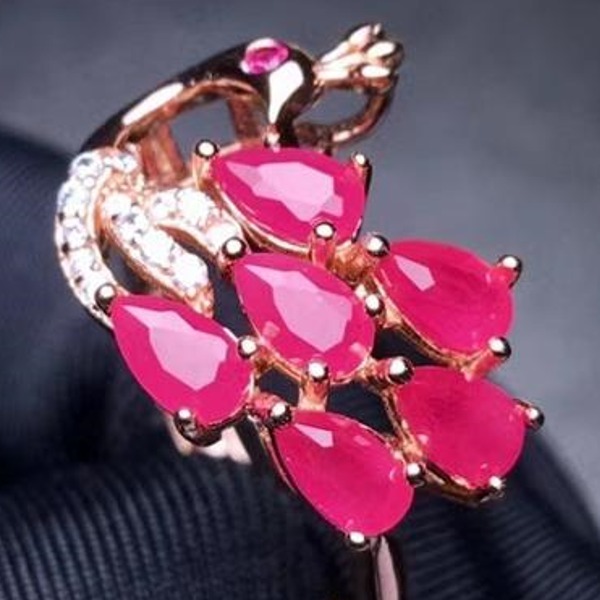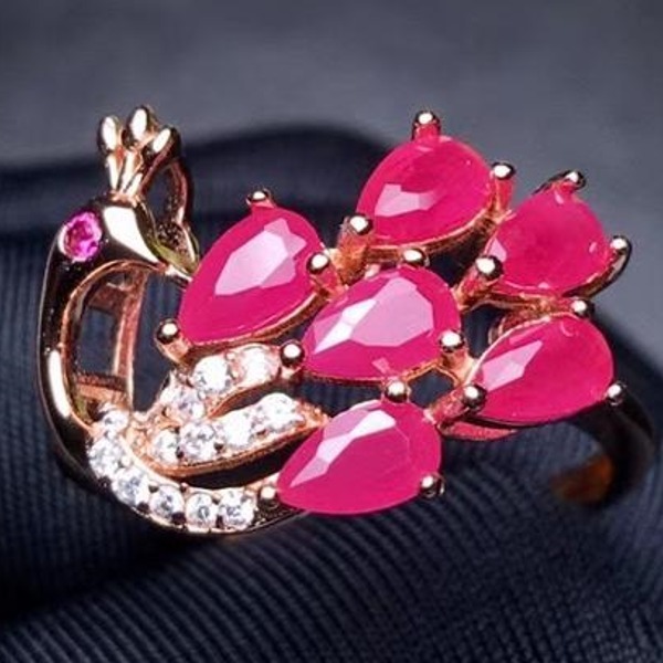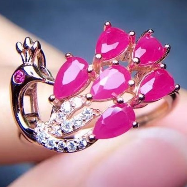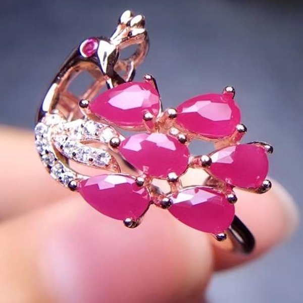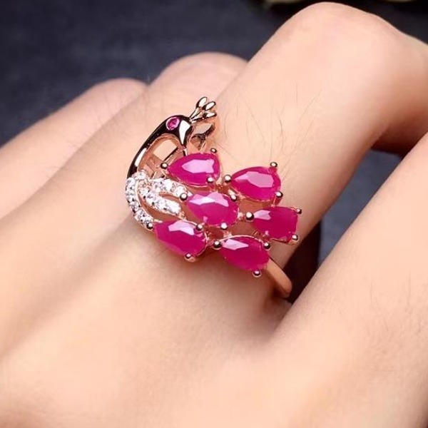 天然宝石ルビーリング、女性のための本物の925スターリングシルバー、上質なウェディングジュエリー