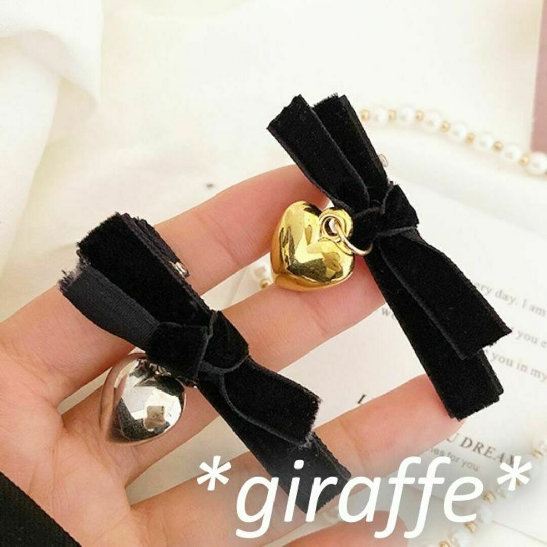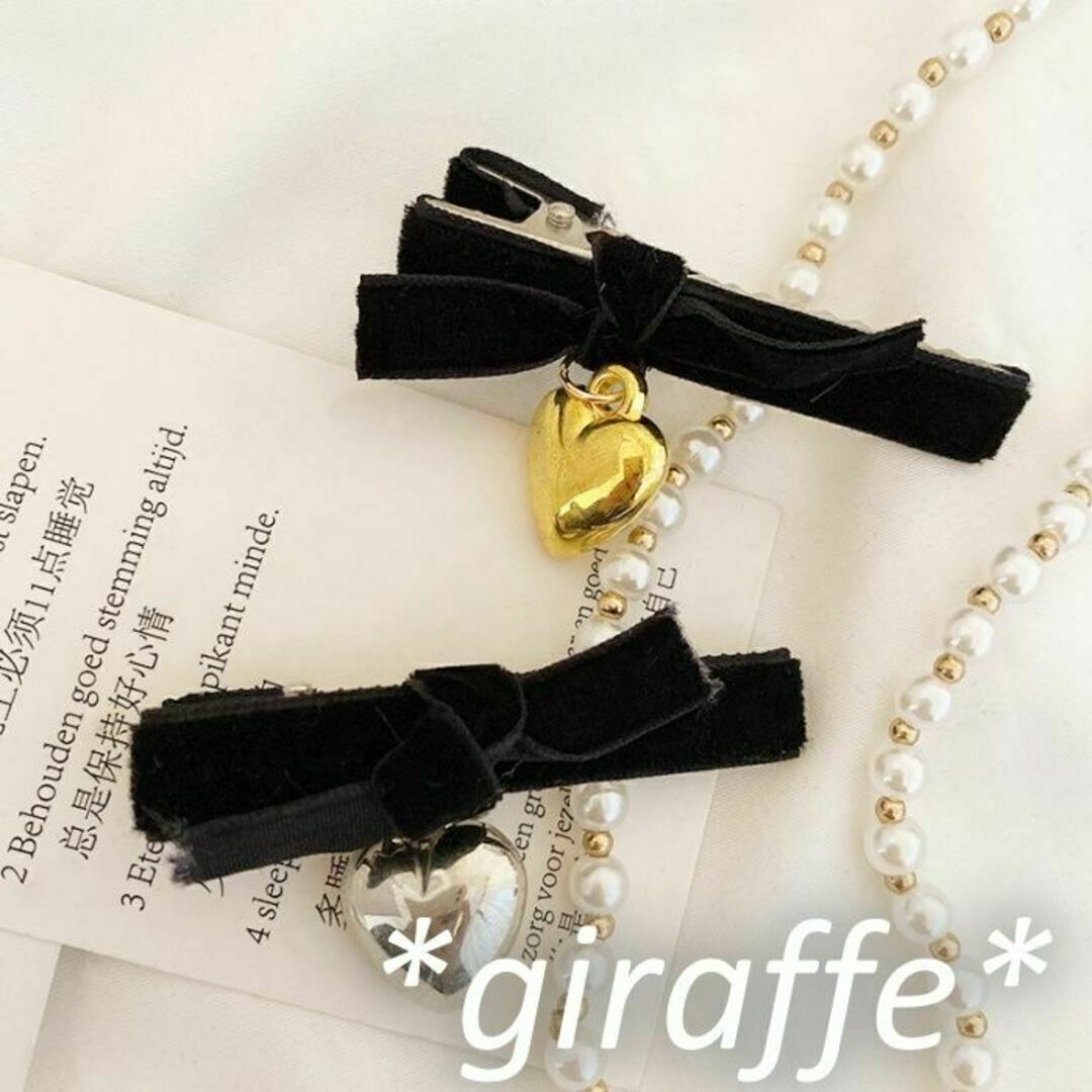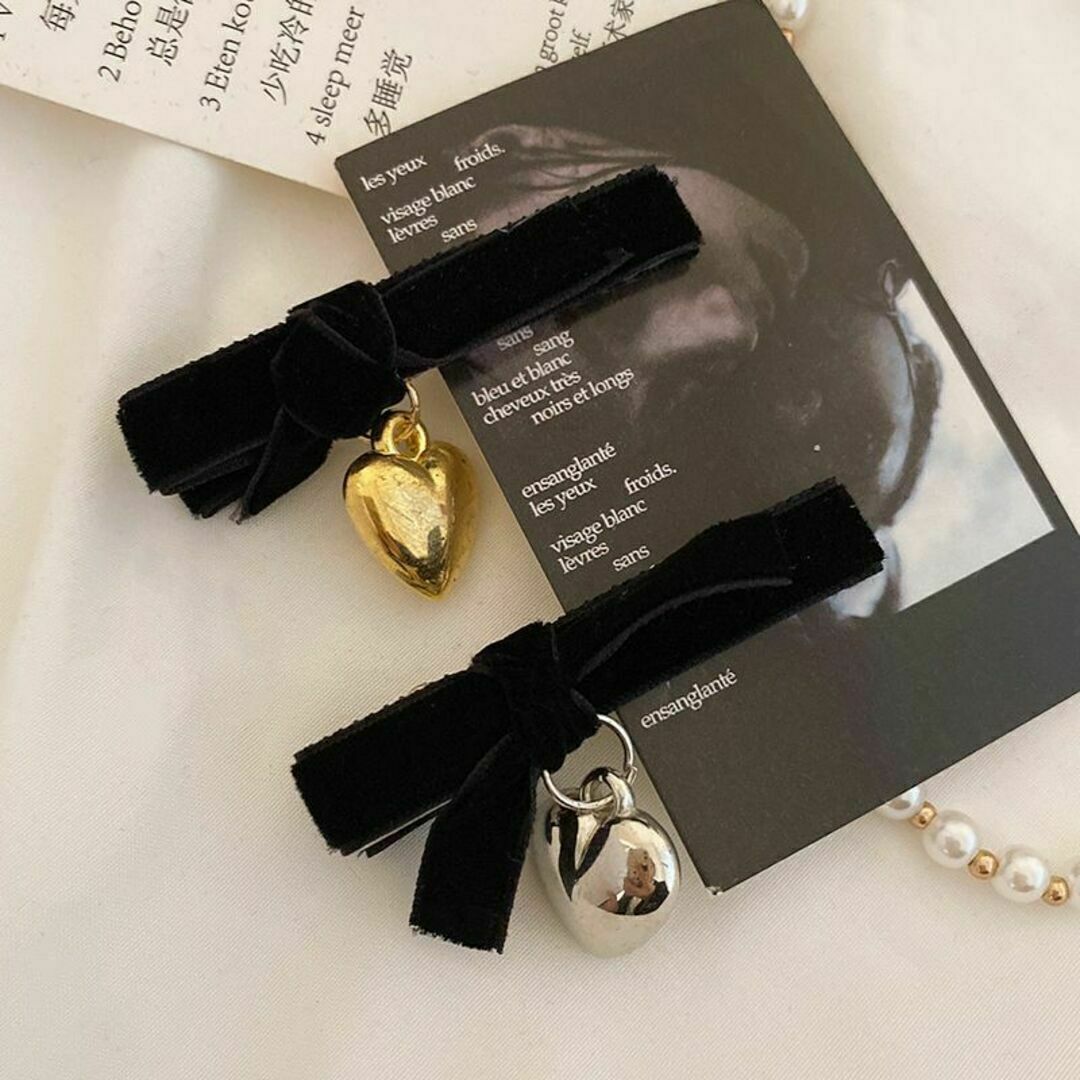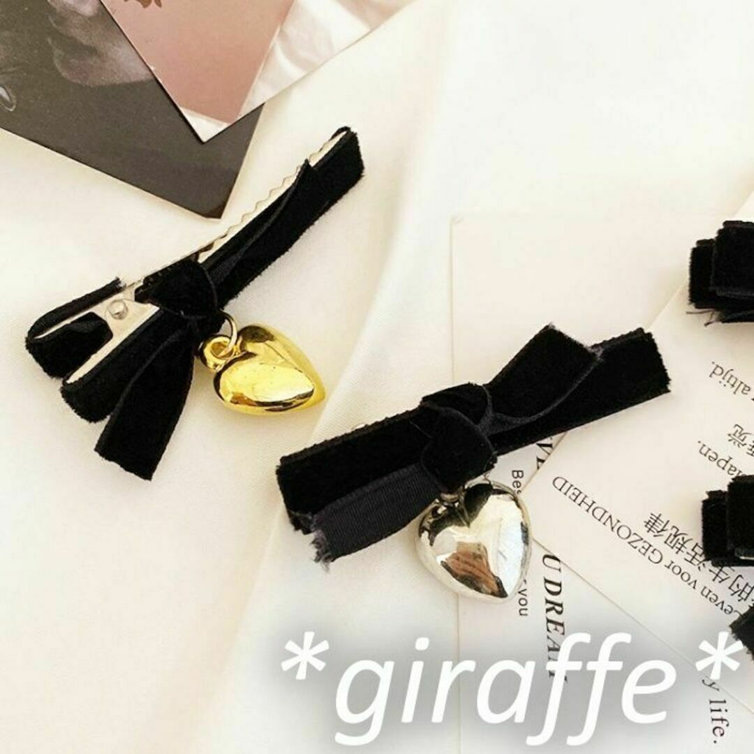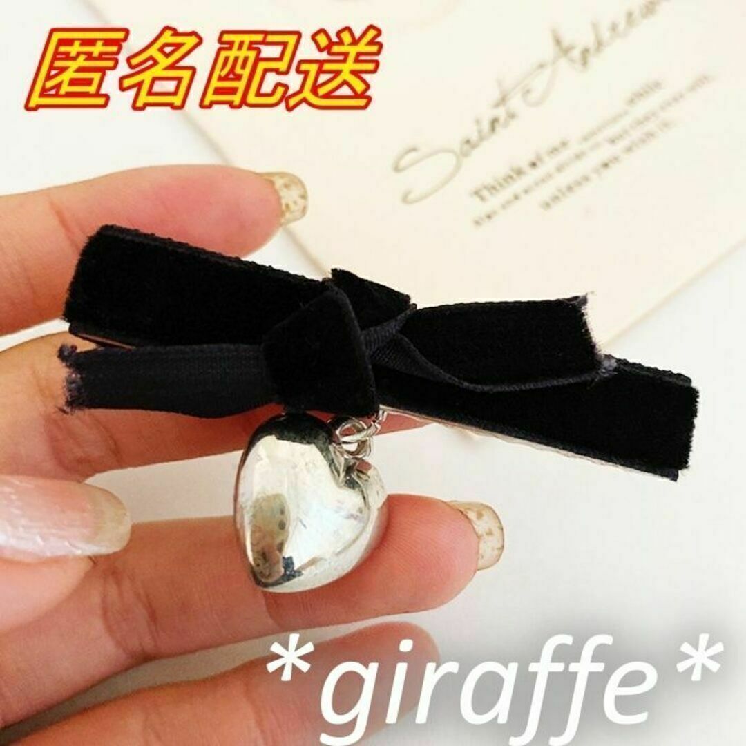 E402 匿名配送 ヘアクリップ ハート 揺れる ベロア リボン 小さい シルバー ヘアピン サイドグリップ