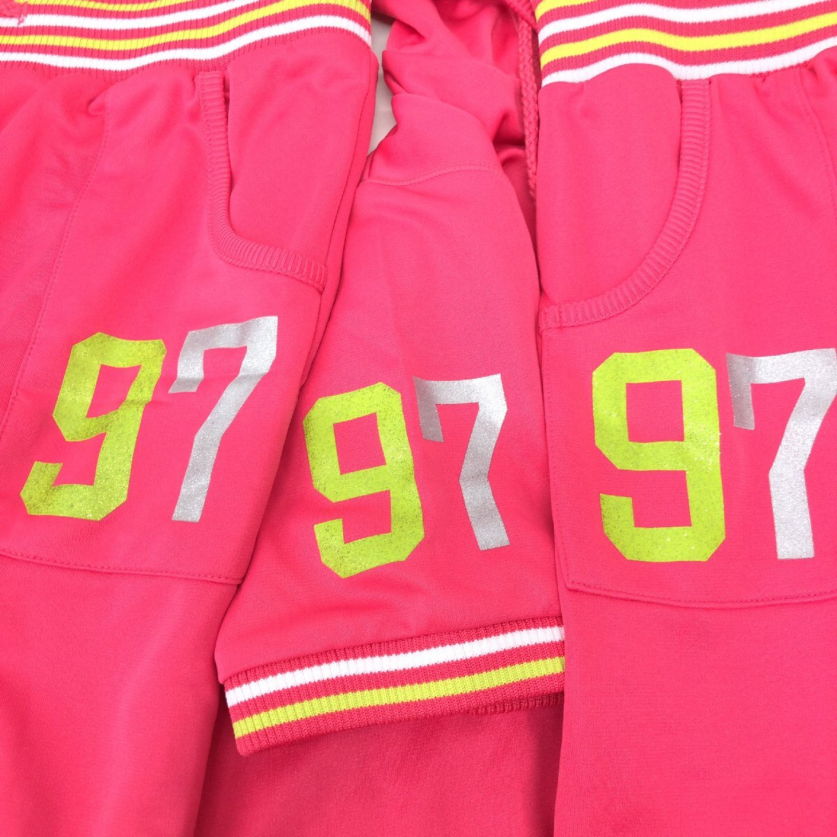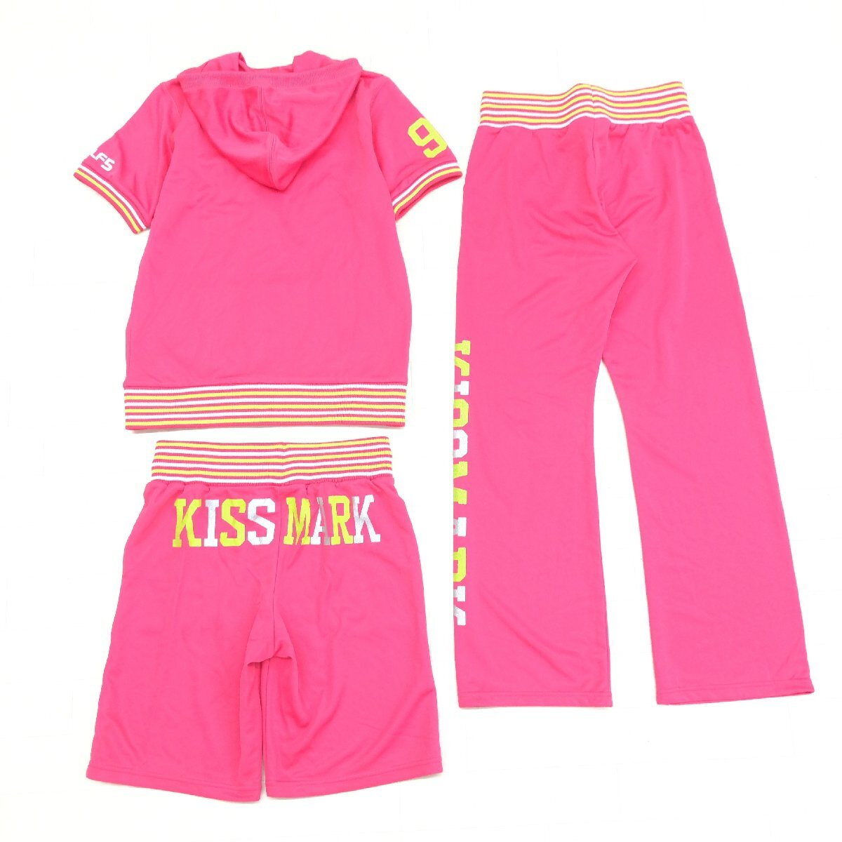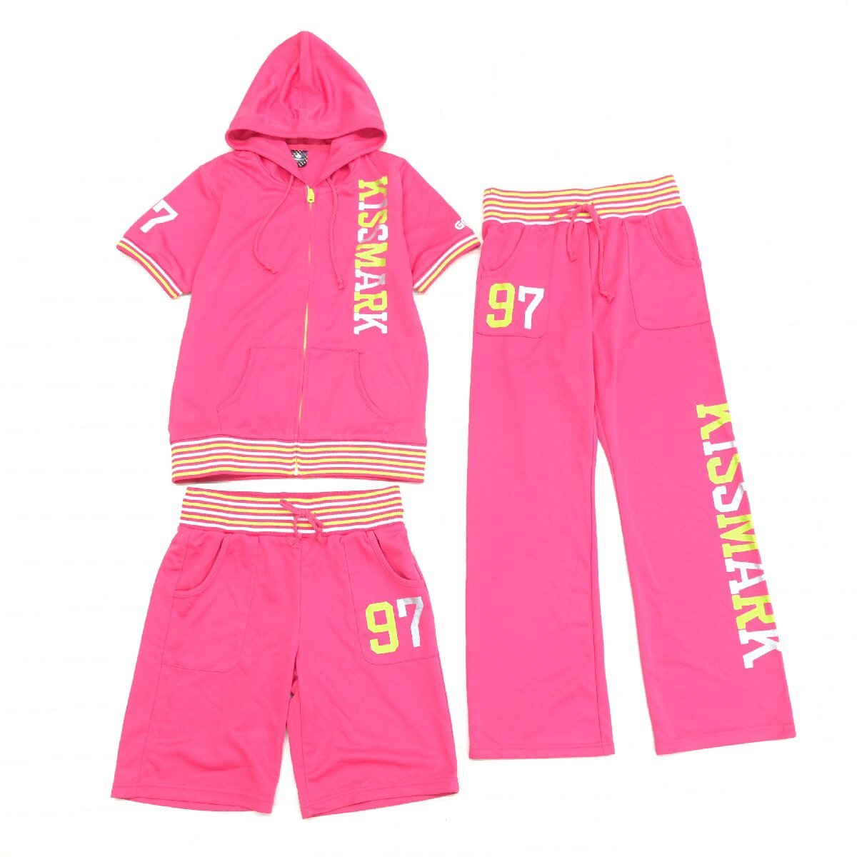 ●美品 Kissmark キスマーク ラメロゴプリント スリーピース ジャージ 上下セットアップ M ピンク パーカー パンツ y2k archive 平成ギャル