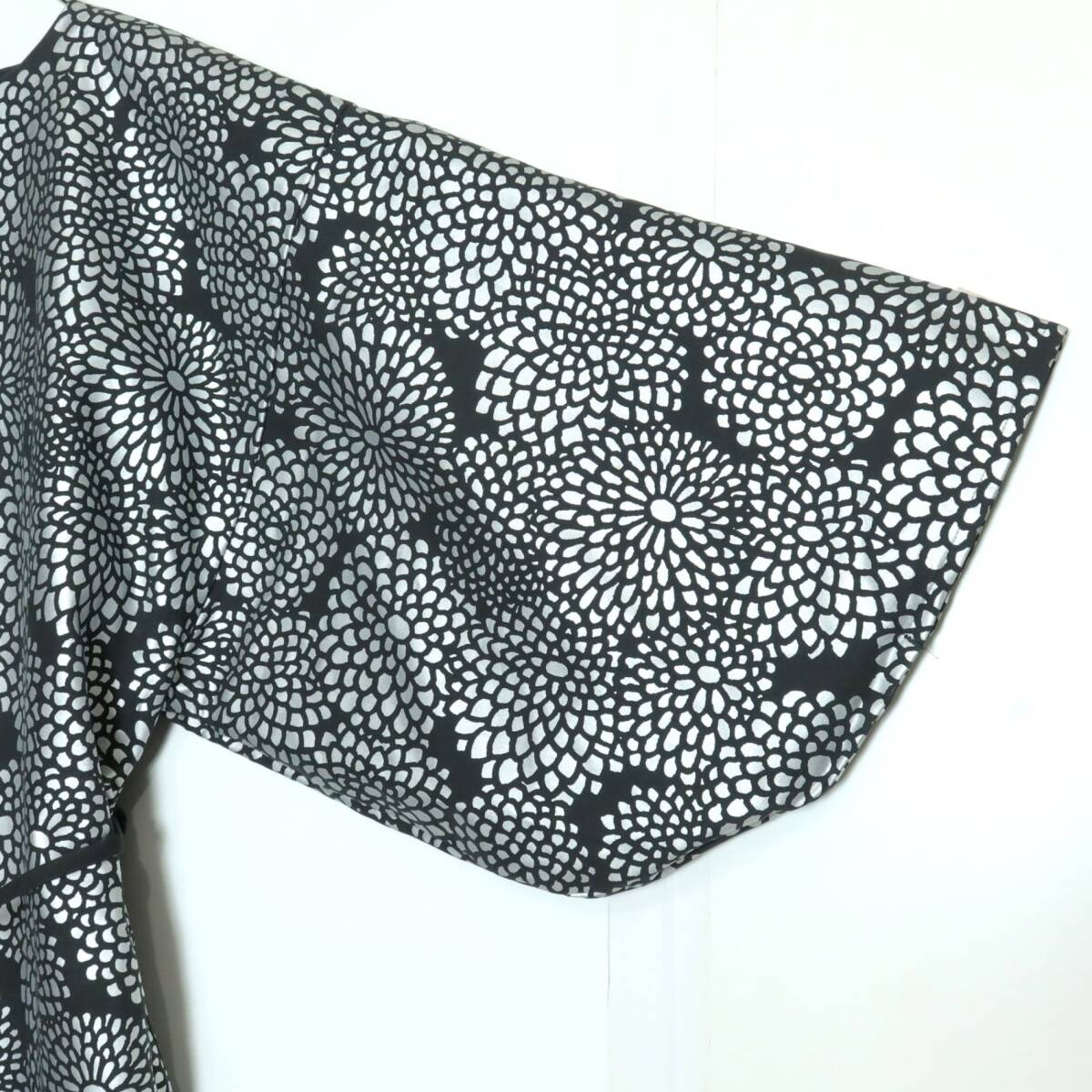 商品説明 | 【実寸約】袖丈50バスト132総丈97(cm) 【サイズ表記】S 【素材】綿100% 【状態】使用感少なめの美品 【デザイン】黒×銀系 着物風の袖がおしゃれな長袖ワンピースです。 張りのある固めの素材で、シルエットがキレイに出ます♪ やや厚手/ポケットあり/細いベルトあり |