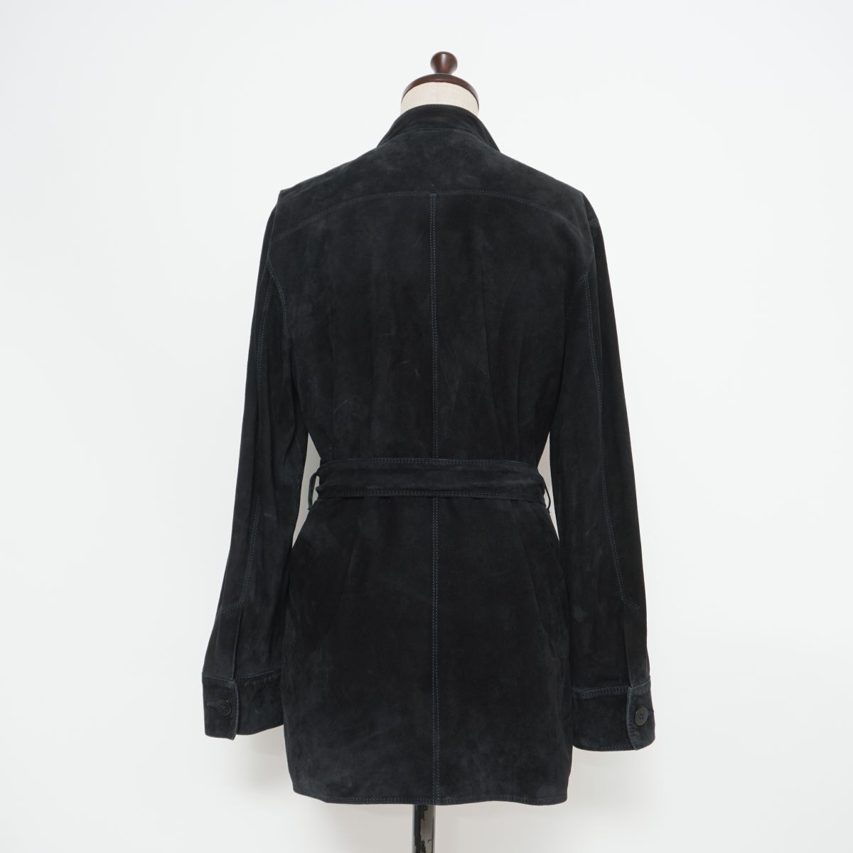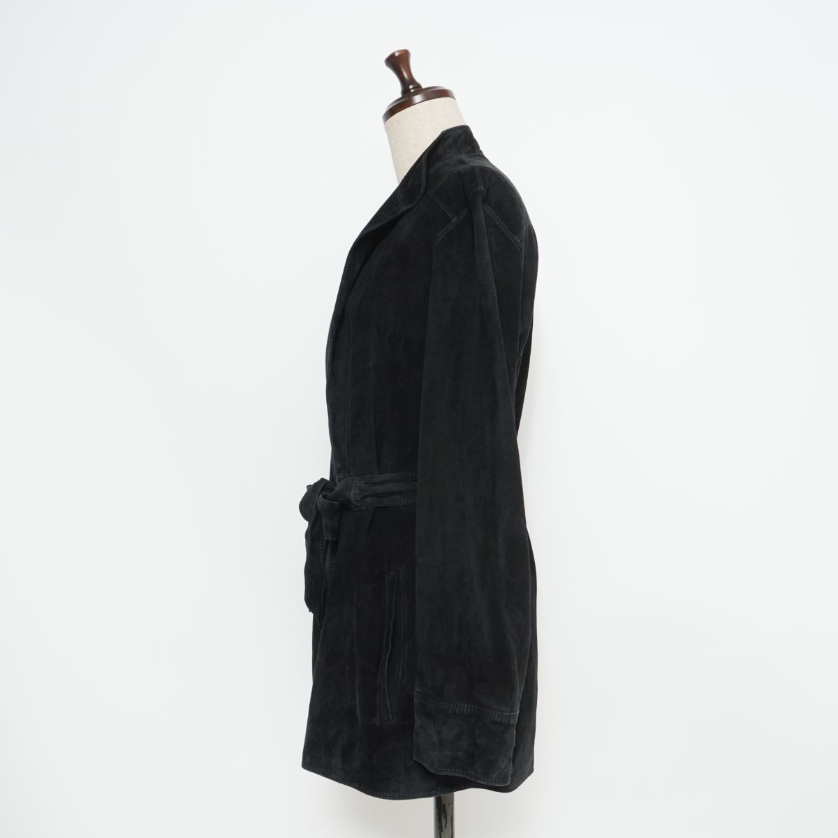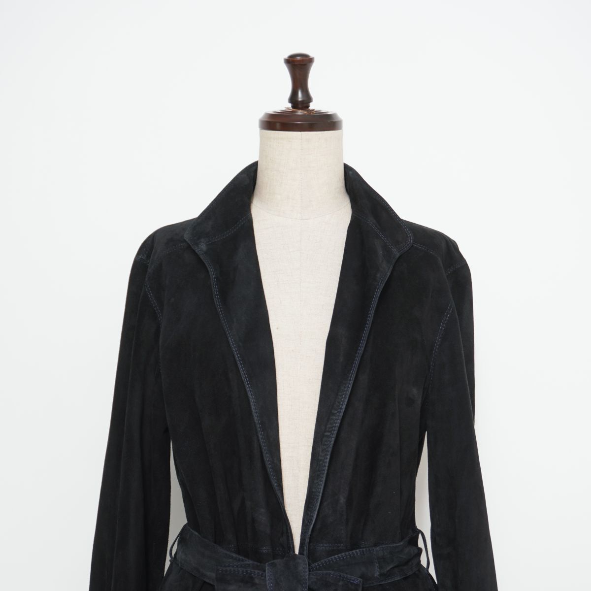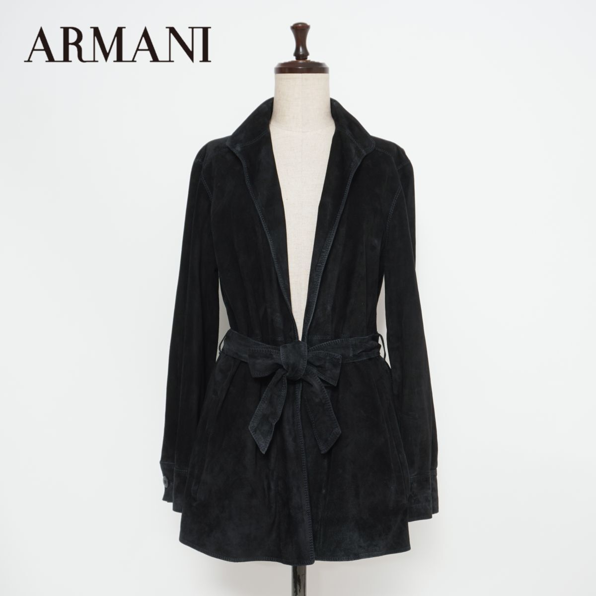 美品 ARMANI COLLEZIONI アルマーニ コレツィオーニ カーフレザーガウンコート 長袖 本革 レディース 黒 ブラック サイズ40*GD215