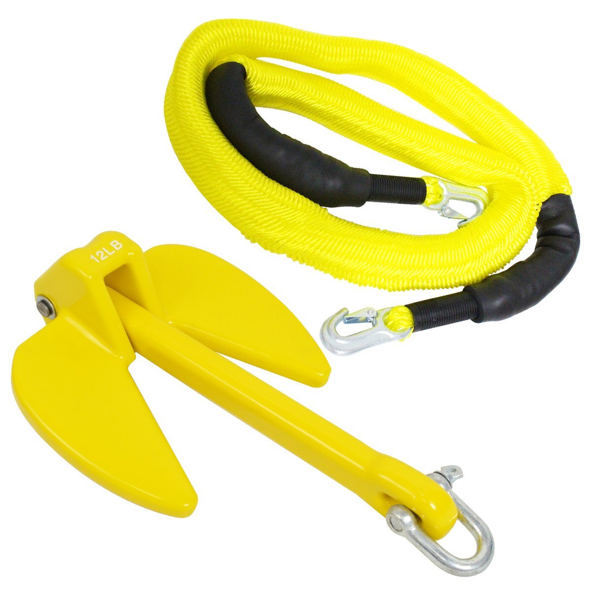 【新品即納】『伸縮ロープ/アンカーセット』ジェットスキー 爪型 アンカー 12LBS 5.5kg 黄色 6M フロート のびのび アンカー ロープ 黄色