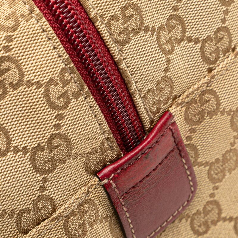 グッチ GGキャンバス ボストンバッグ 153240 ベージュ レッド キャンバス レザー レディース GUCCI 【中古】