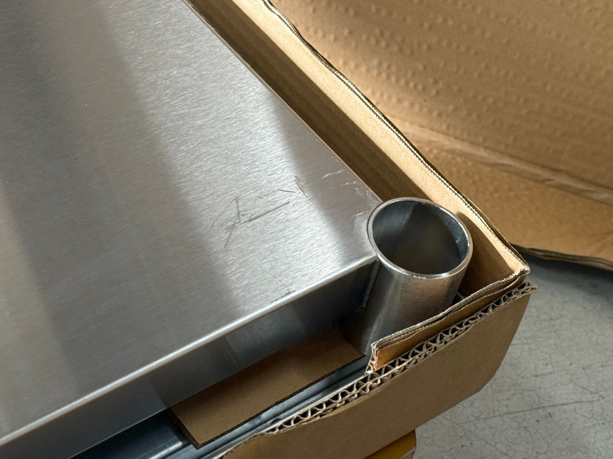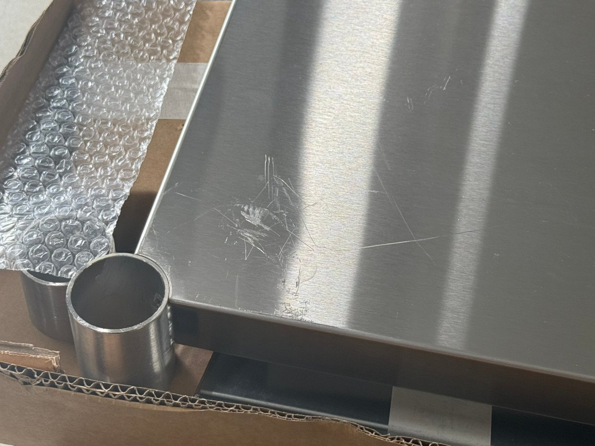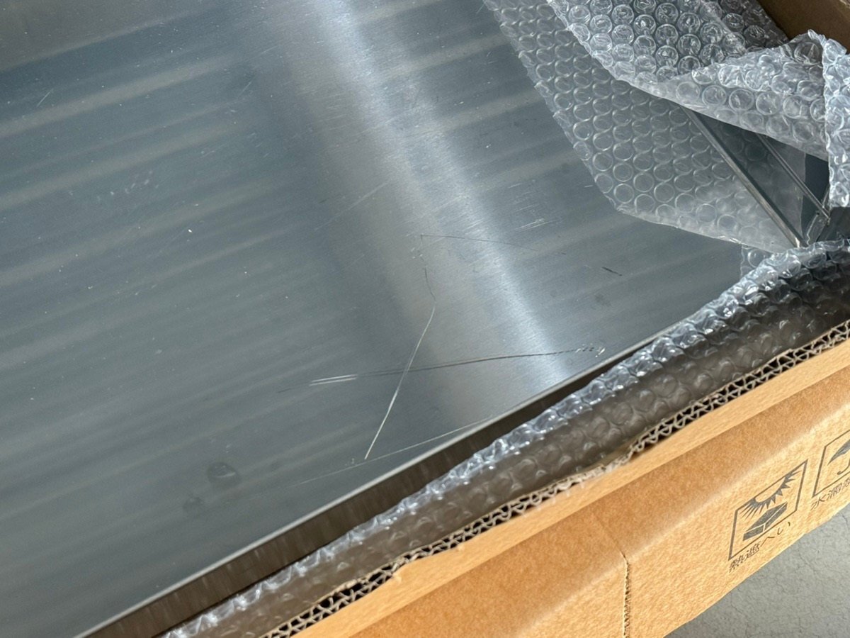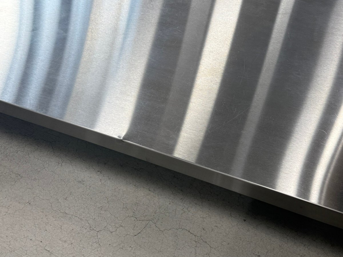※天板に画像のようなキズ、汚れが見受けられます。 ※天板裏にテープを剥がした跡が複数ございます。 ※天板表面裏面にキズ、へこみがたくさんあります。写真でご確認ください。 ※画像では分からないキズ、凹み、サビなどある場合があります。 |