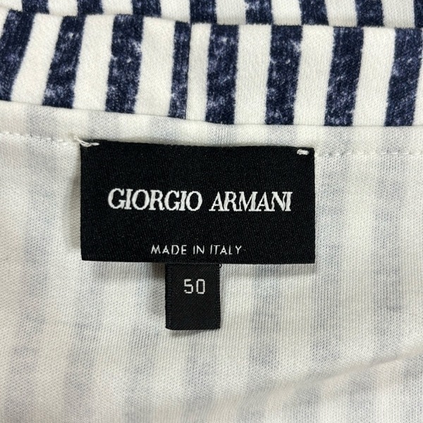 ジョルジオアルマーニ GIORGIOARMANI 半袖Tシャツ サイズ50 M - 白×ダークネイビー メンズ ストライプ 美品 トップス