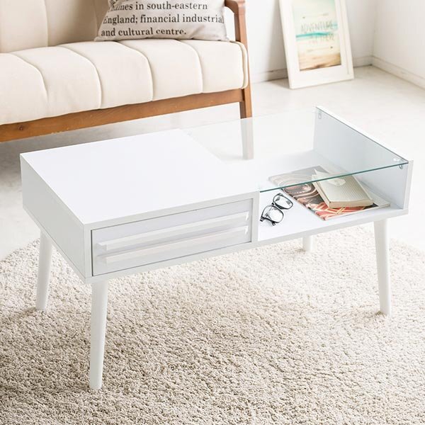 ローテーブル おしゃれ テーブル 木製 センターテーブル ガラス 引き出し ガラステーブル 強化ガラス 5mm 北欧 モダン