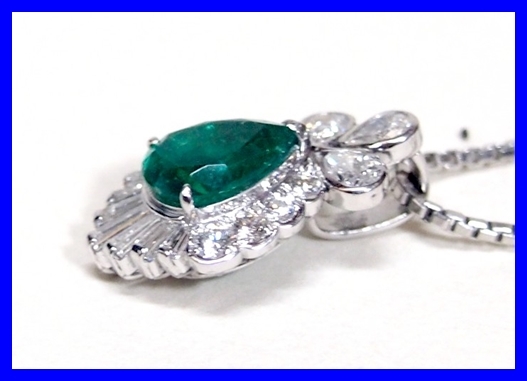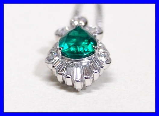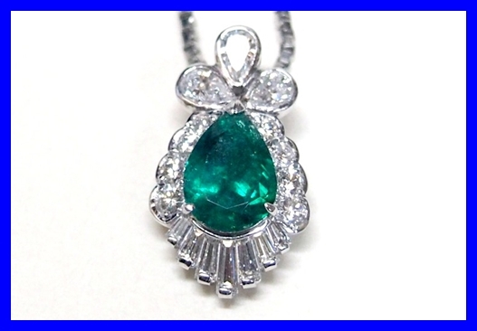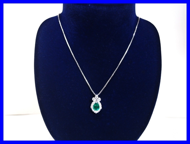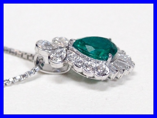 ★Pt900/Pt850 エメラルド ペアシェイプ1.649ct ダイヤモンド1.02ct ネックレス 仕上げ済み!★