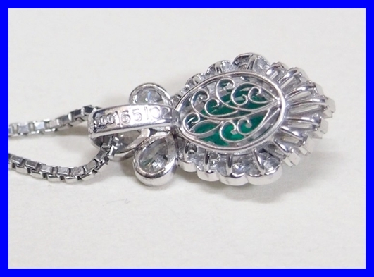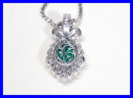 Pt900/Pt850 エメラルド ペアシェイプ ダイヤモンド ネックレス 仕上げ済み、中古品(仕上げ済み)。
