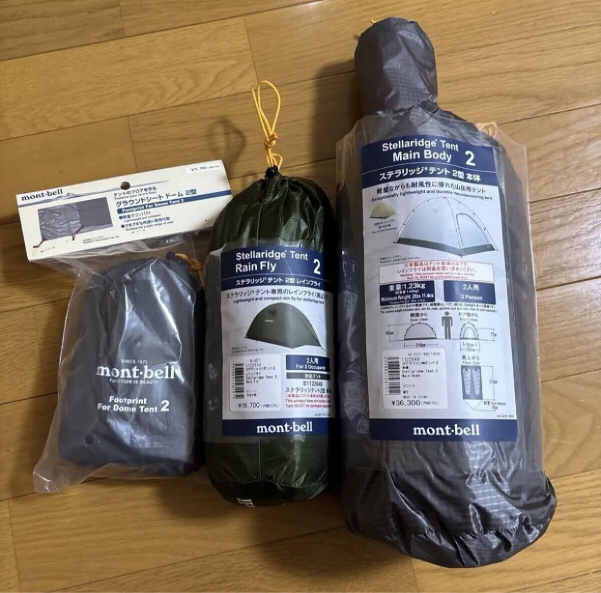 モンベルステラリッジ2の本体、 レインフライ、グランドシートの3点セットになります。