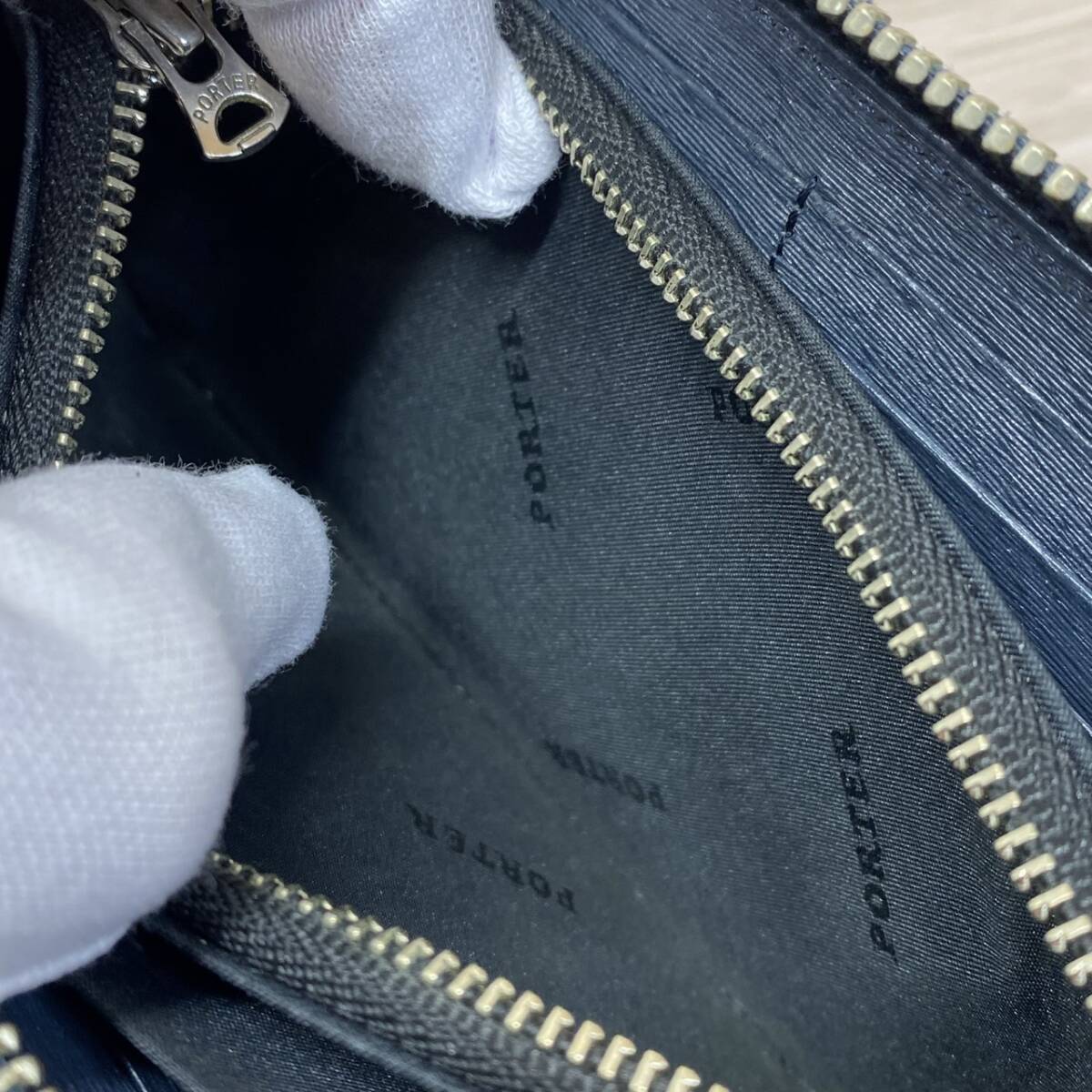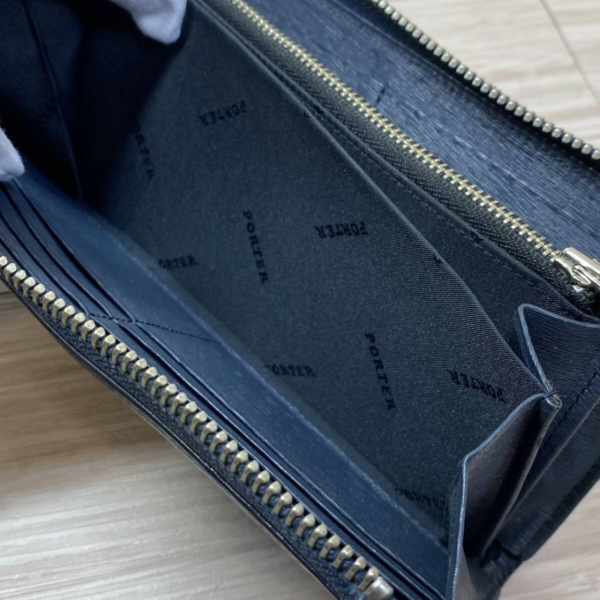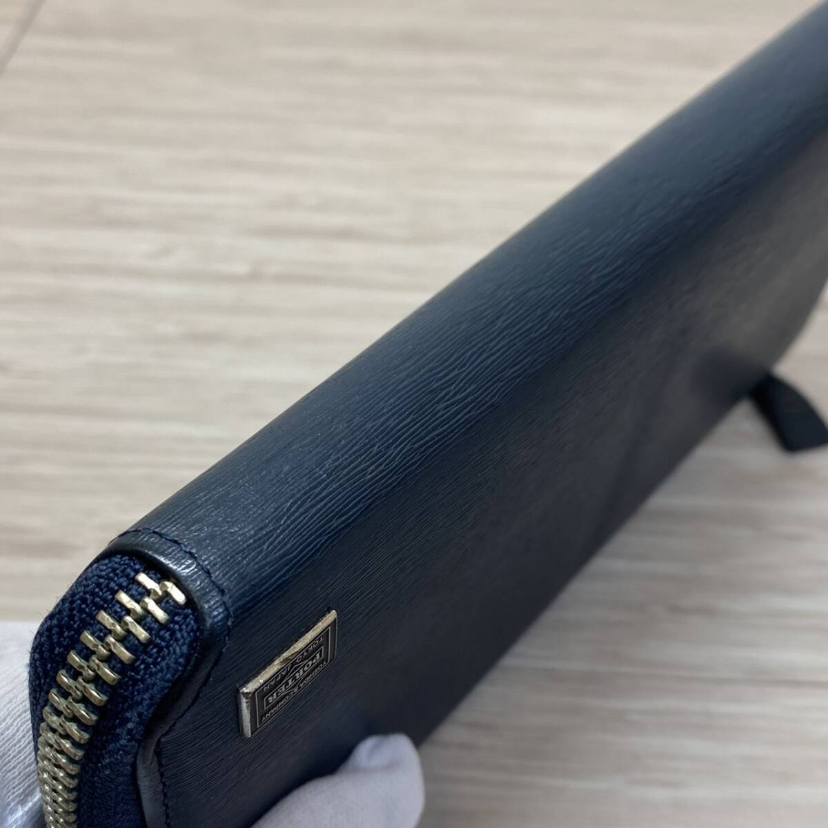 ●【MH-1192】中古品 PORTER ポーター CURRENT カレント L字ファスナー 長財布 ウォレット ネイビー