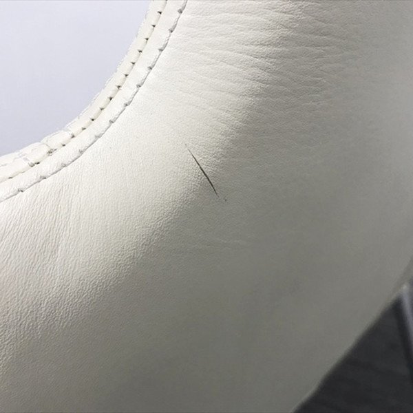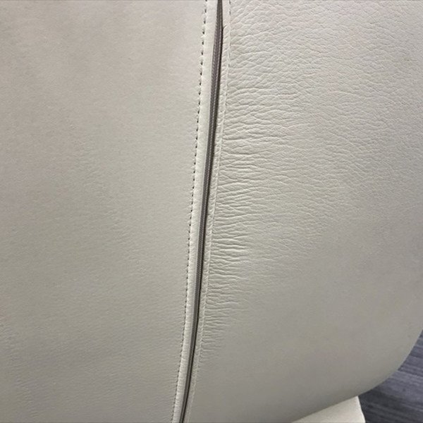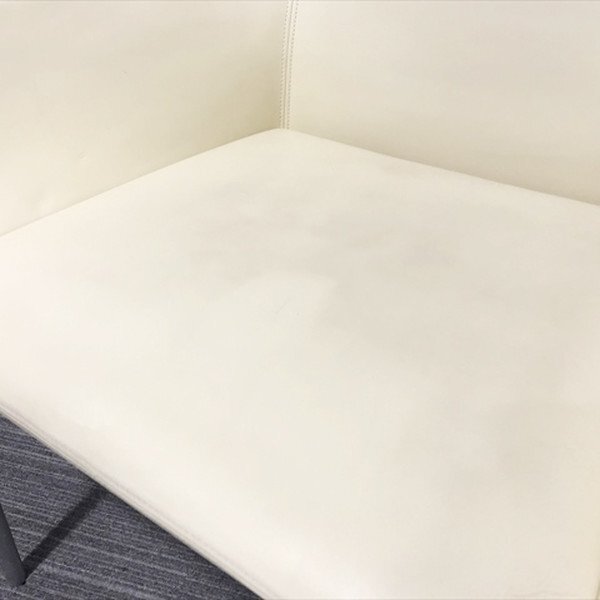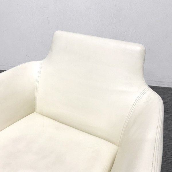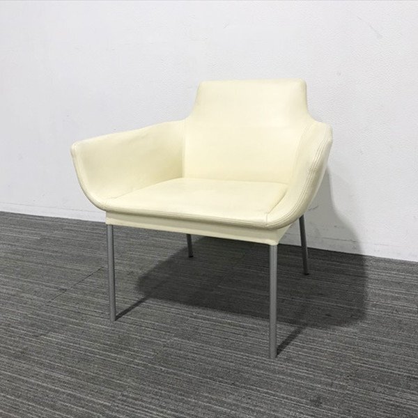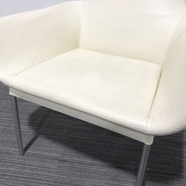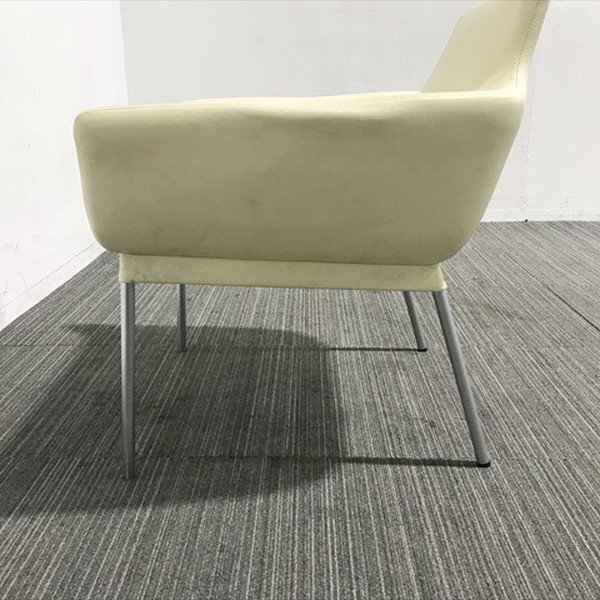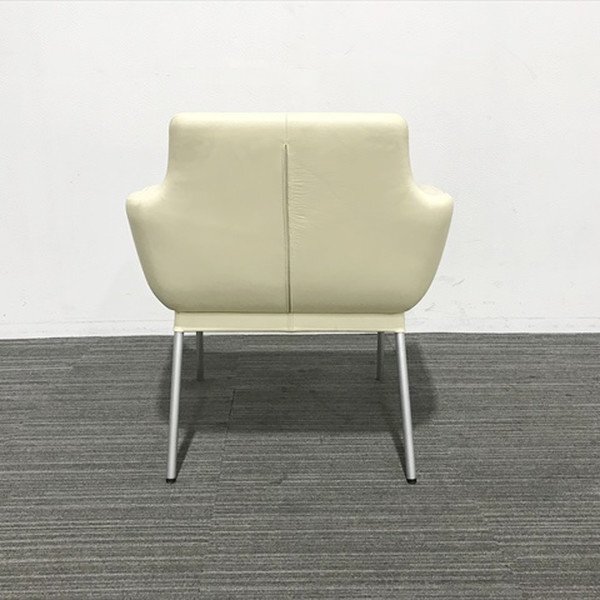 | クリーム色のレザーを使用したチェア。デザイン性の高いチェアはどの角度から見ても美しく、オフィスのエントランスなどに設置することで上質な印象をサポートします。 | |