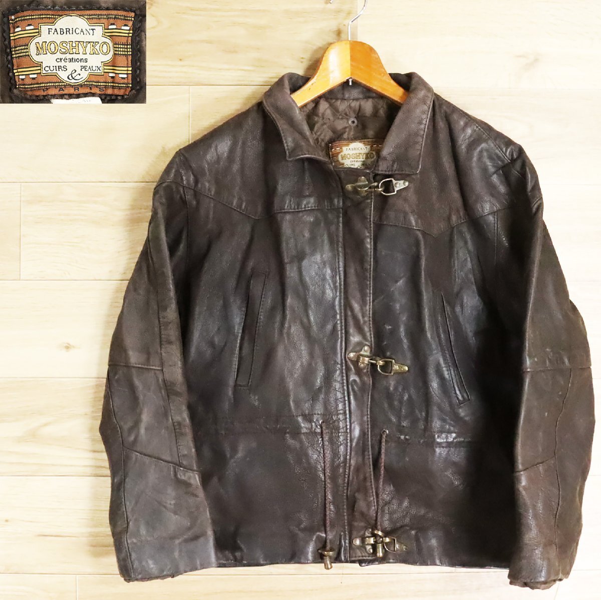 A8S/D6.23-4 フランス製 MOSHYKO ファイヤーマンジャケット 本革 レザージャケット 革ジャン 皮ジャン フレンチヴィンテージ