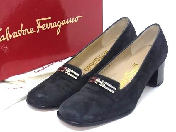 Salvatore Ferragamo フェラガモ スエード パンプス ヒール 表記サイズ 5 1/2(約23.0cm) 靴 シューズ レディース ブラック系 DI8506