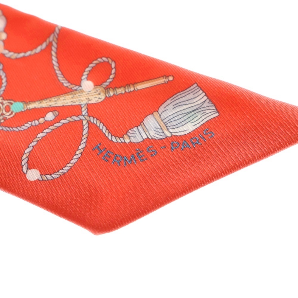 HERMES エルメス ツイリー Les Cles a Pois レクレアポア レッド シルク スカーフ