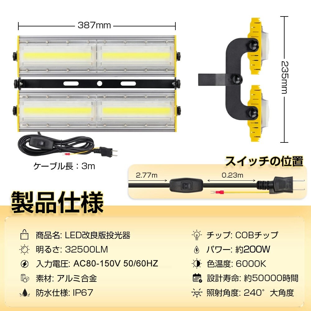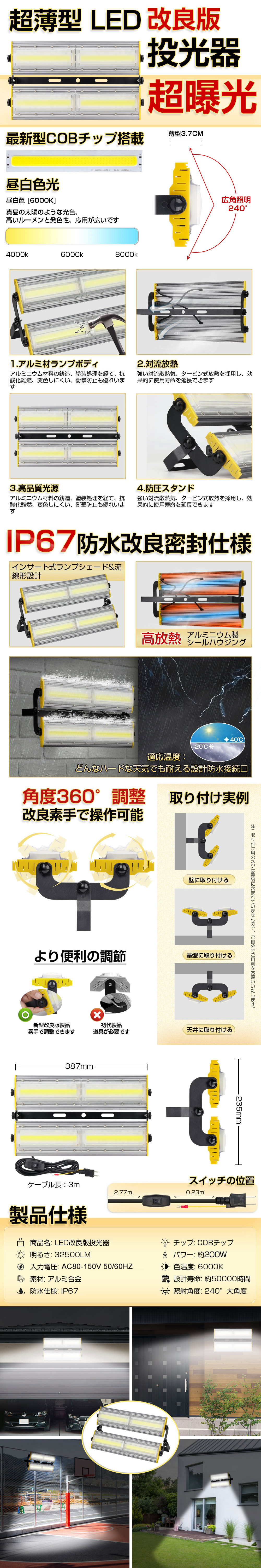 進化版 200W LED投光器 漸く登場! 200Wと省電力で、従来の2000W相当の明るさです!