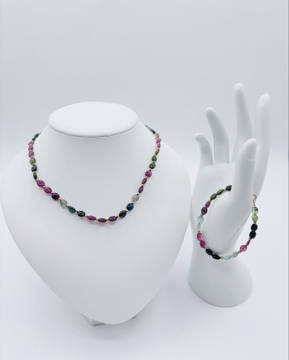 【AG-26】トルマリン ネックレス ブレスレット K18刻印