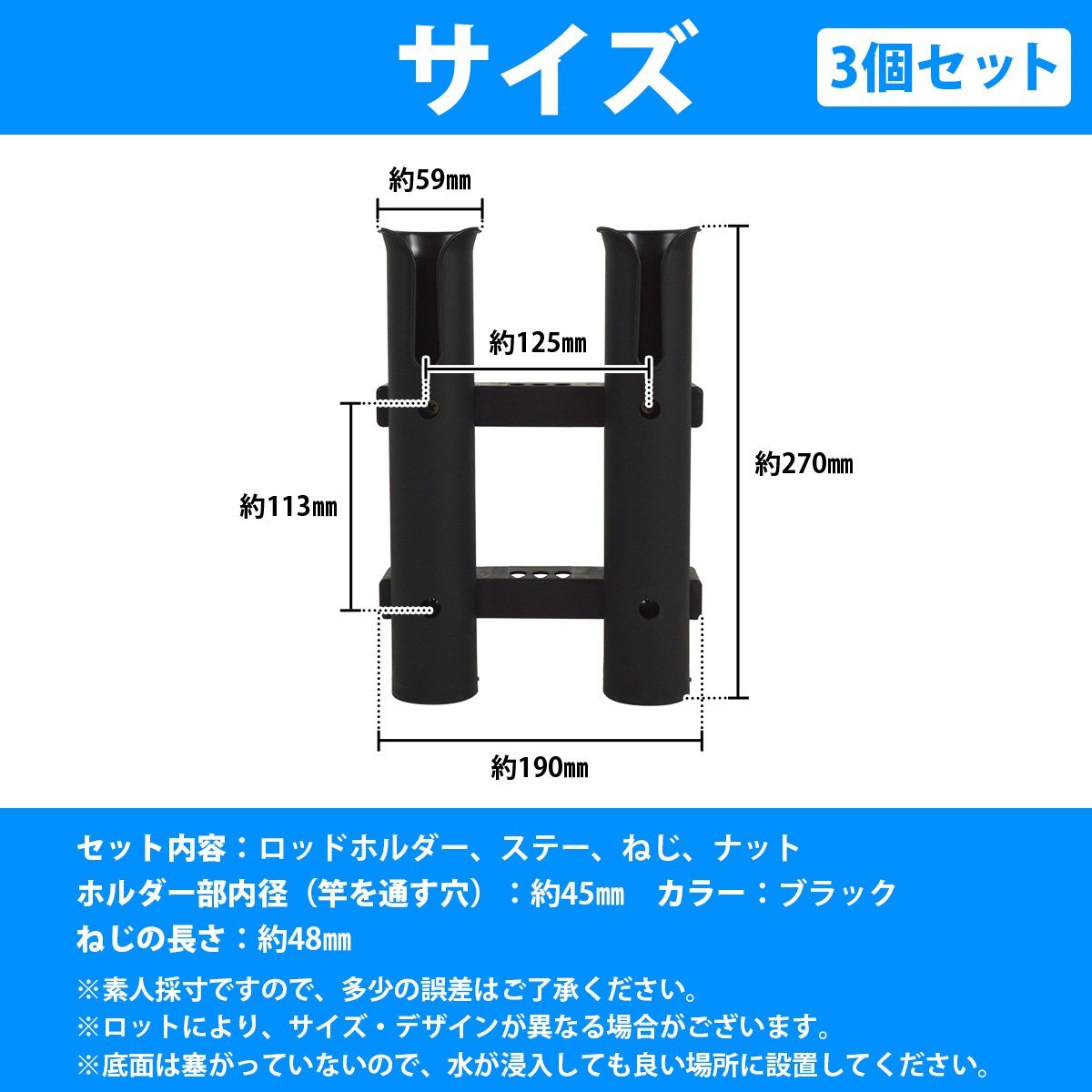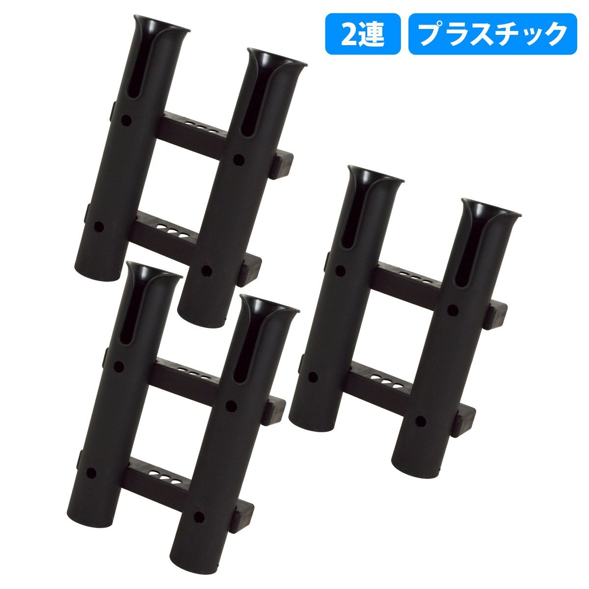 [2連 3個セット] ロッド ホルダー 竿 立て 置き 入れ 釣り フィッシング スタンド ネジ付 固定 船 漁船 ボート 黒 ブラック