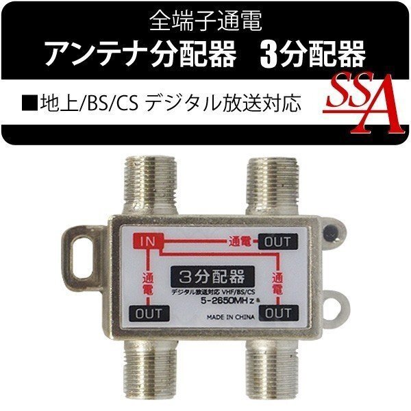 | 地上/BS/CS デジタル放送対応 全端子通電 アンテナ分配器 3分配器 |