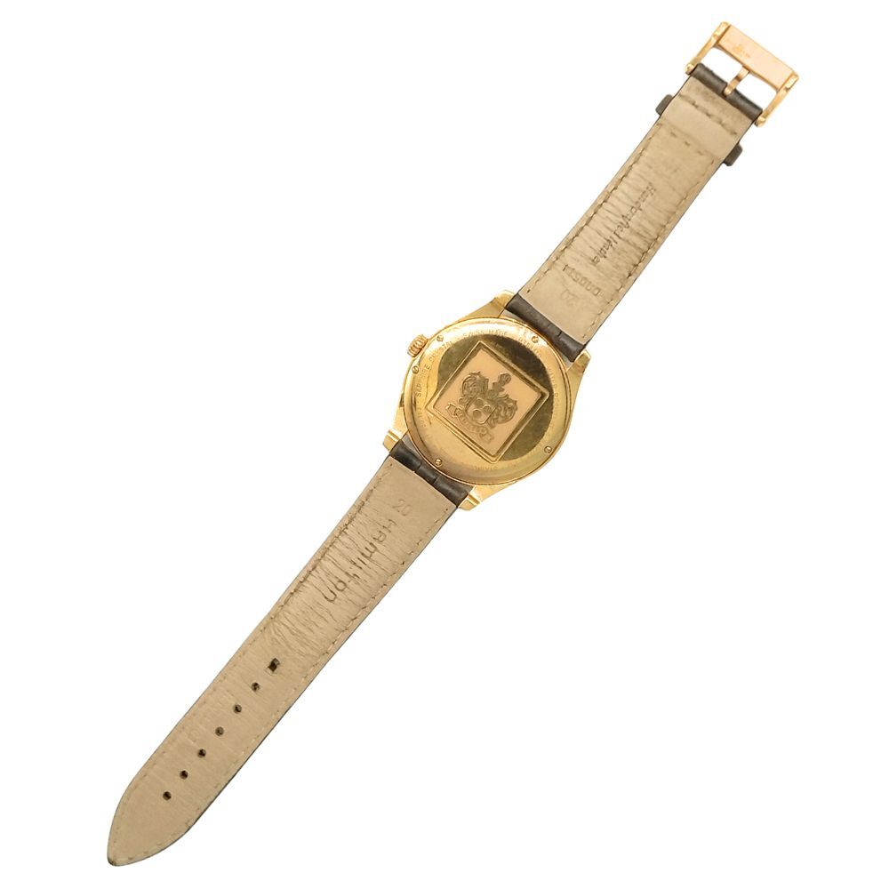 稼動品、ベゼルに擦れキズあり、ケースに多少の擦れ、擦れキズあり、裏面に擦れ、くすみあり、革ベルトに多少の使用感あり、裏面に薄ら黒ずみあり、尾錠に擦れ、くすみあります。簡易的な動作確認のみの為、購入後にOH推奨です。画像の物で現状渡しです。 【外側】