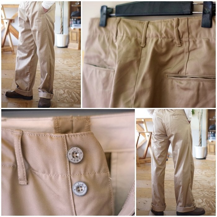 現代のチノパンと比べると十分にゆったりとしたシルエットを持ち、単なるビッグとかワイドではなく、あくまで その当時の時代を彷彿させる作品です。