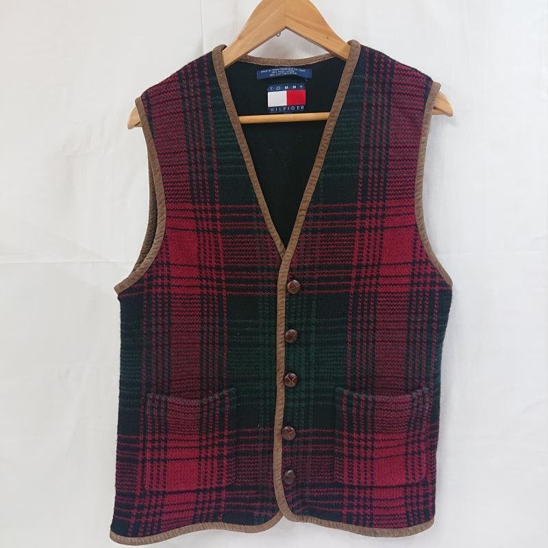 トミーヒルフィガー TOMMY HILFIGER トミーヒルフィガー チェックパターン ニットベスト フラッグタグ オールドトミー M