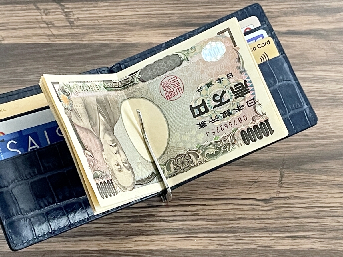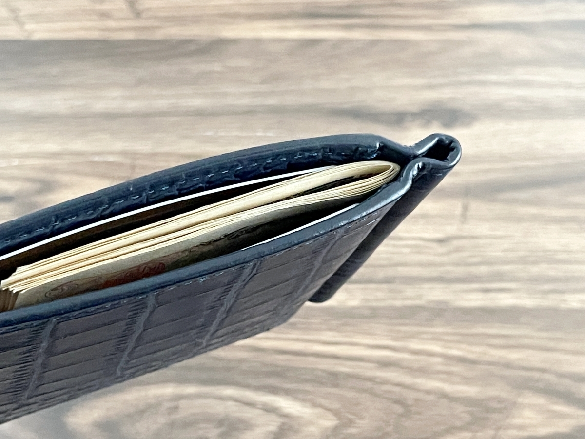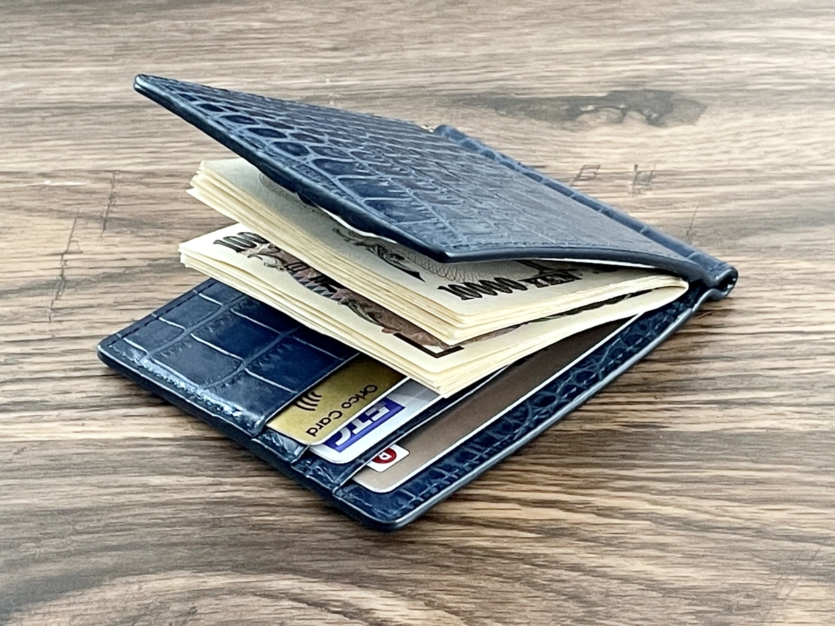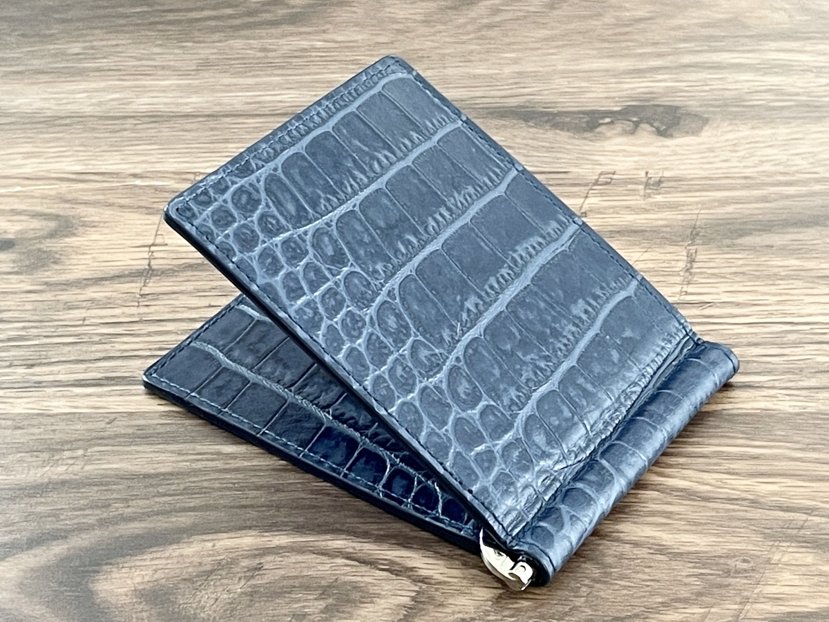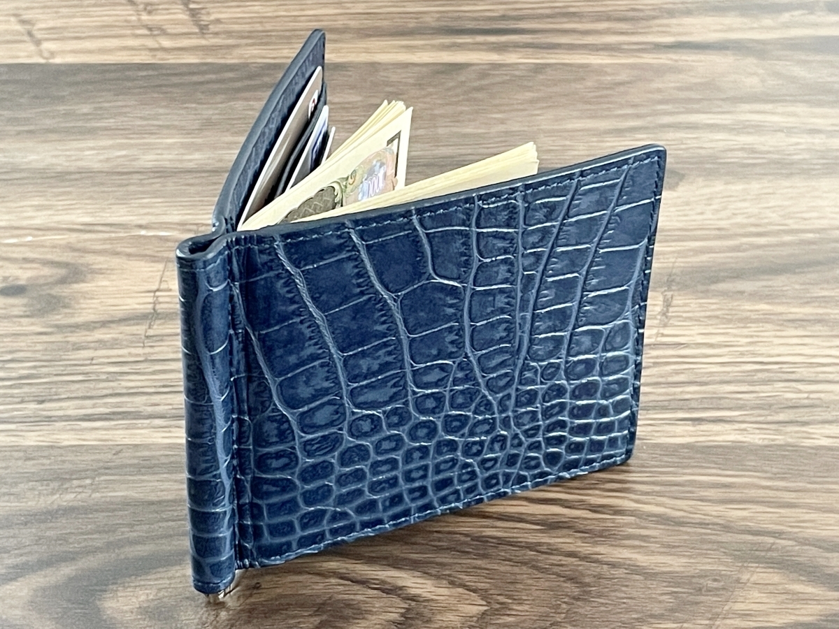 クロコダイル 型押し 牛革 ネイビー 無双 マネークリップ