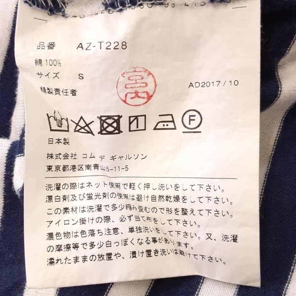 プレイコムデギャルソン PLAY COMMEdesGARCONS 長袖Tシャツ サイズS - 白×ネイビー レディース クルーネック/ボーダー AD2017/10 美品