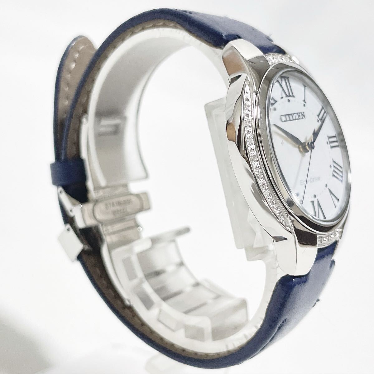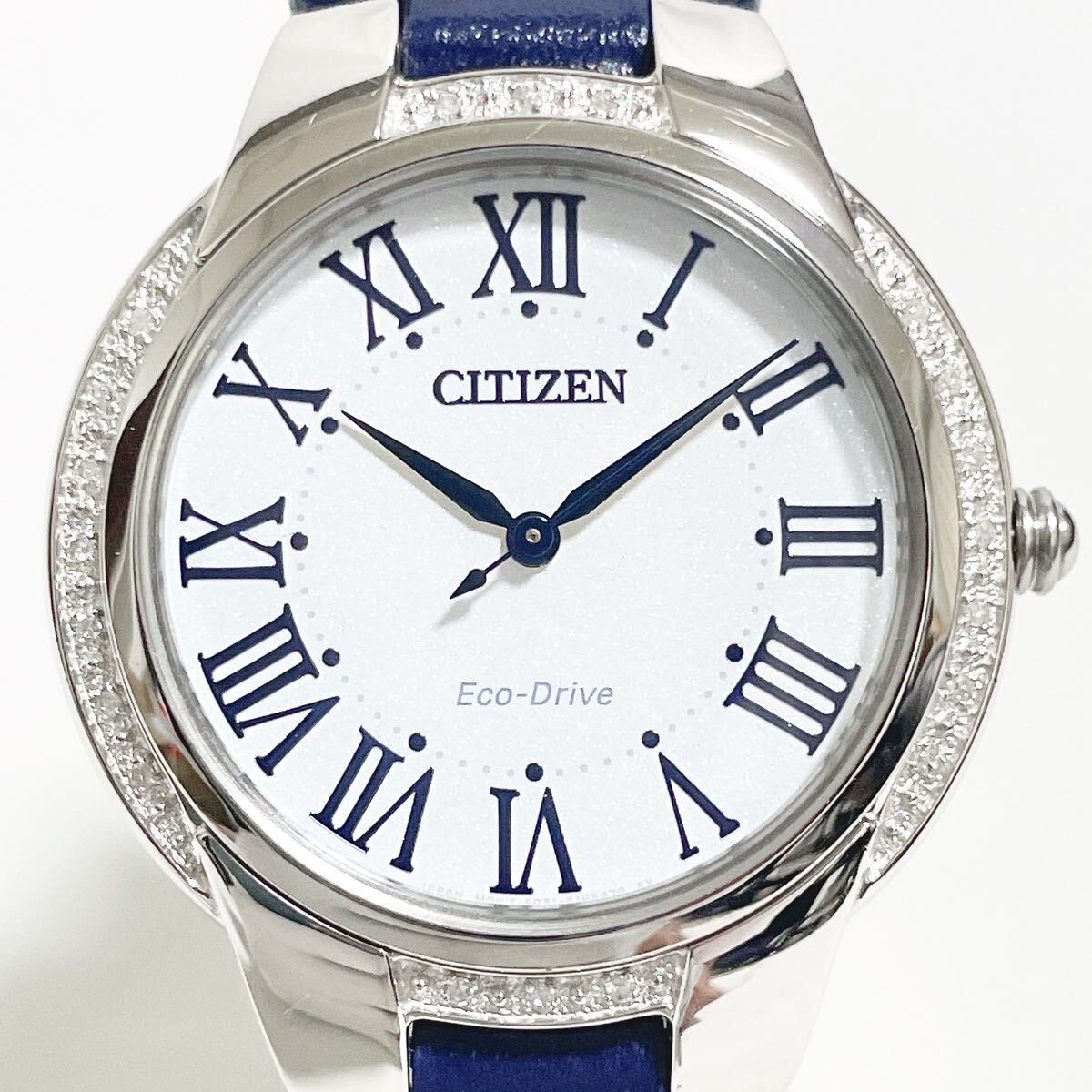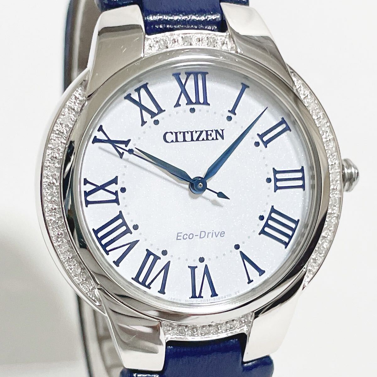 美品 稼働品 CITIZEN シチズン Eco-Drive エコドライブ ダイヤベゼル E031-S110041 ソーラー ホワイトローマン文字盤 純正レザーベルト