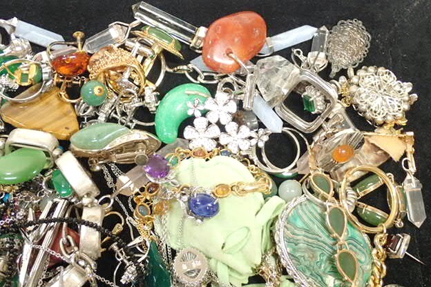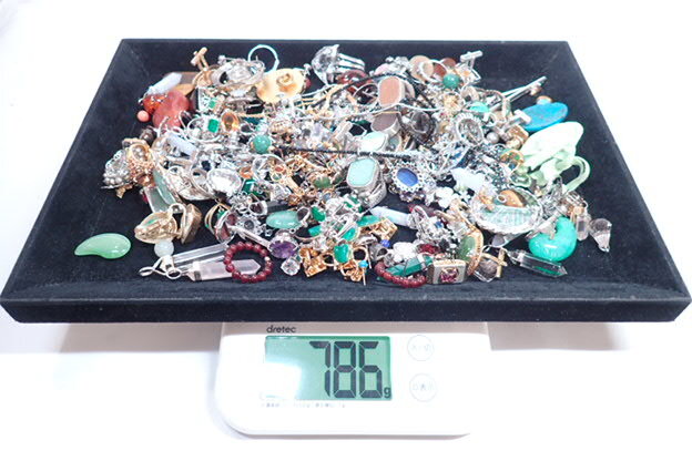 1021[E]アクセサリー素材♪ルース/ジュエリー/部品取りに♪ 刻印有含む 約786g 天然石 スターサファイア/アベンチュリン/アメジスト/トルコ石 | ||