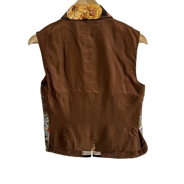 エルメス HERMES ベスト サイズ36 S - ダークブラウン×グレー×マルチ レディース シルク/ジップアップ/中綿 美品 トップス