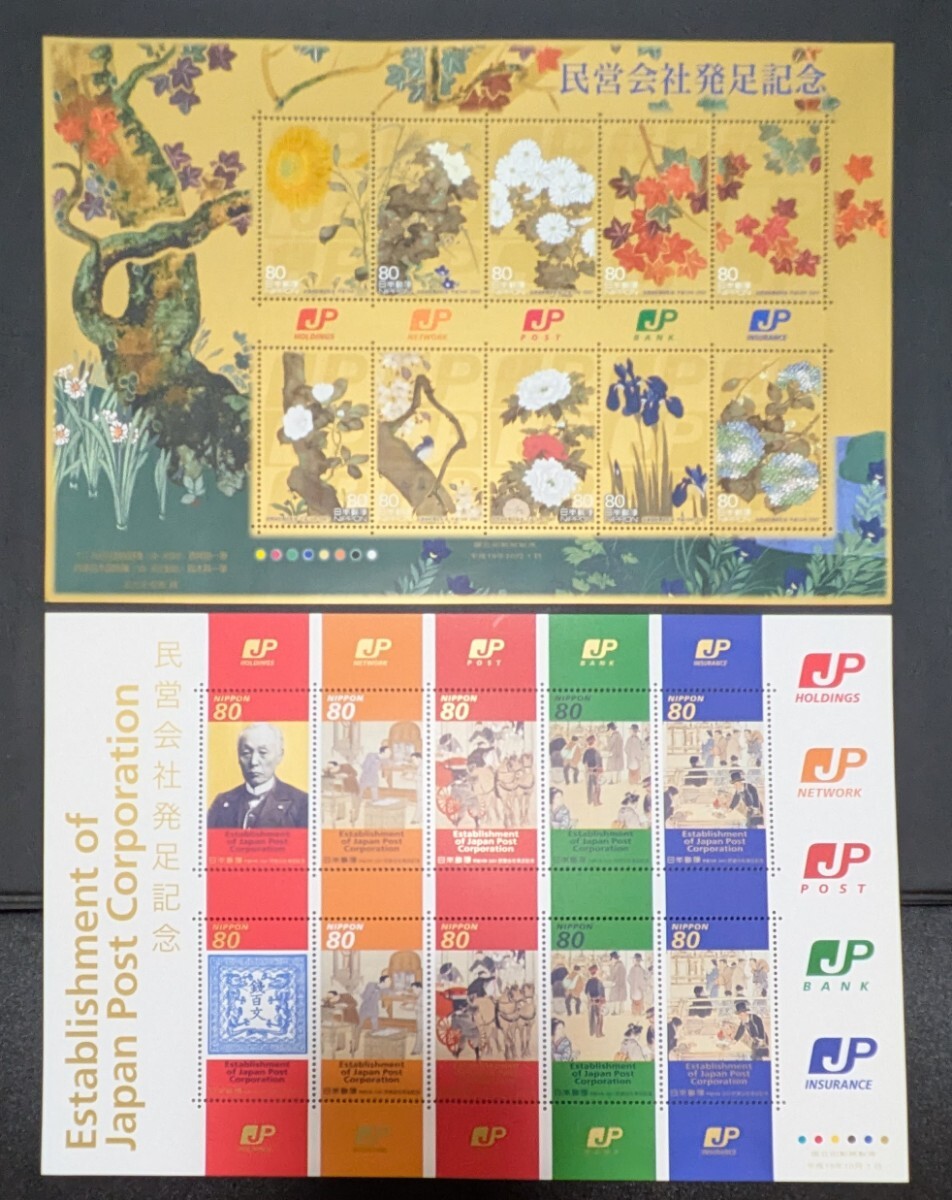 2007年・記念切手-日本郵政民営会社発足シート(琳派・郵政史)