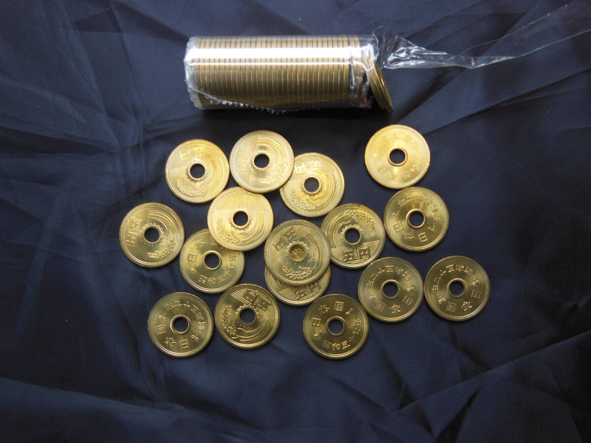 ★5円硬貨 昭和57年 5枚 未使用 銀行ロール出し 5円玉 新品