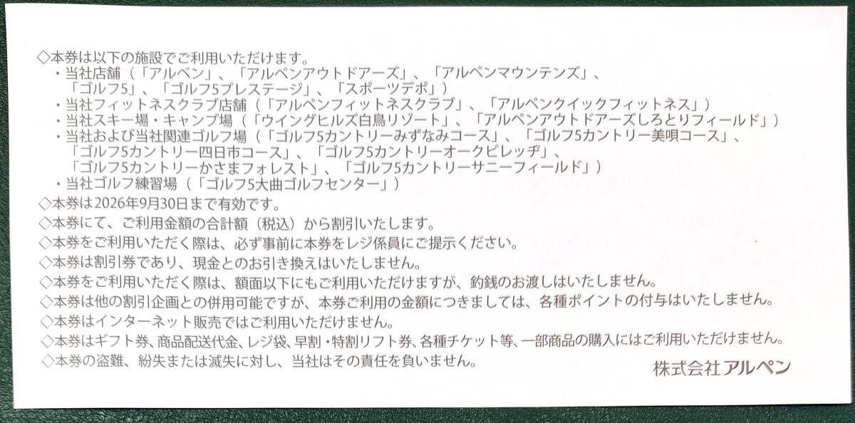 最新☆アルペン株主優待券 3,000円分  有効期限2026年9月30日まで